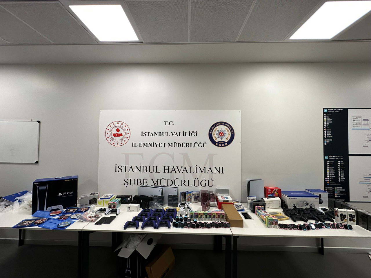 Şüphelilerin yanlarında bulunan valizlerde ve üst aramasında piyasa değeri toplam 1 milyon lira olan 43 akıllı kol saati, 4 playstation-5, 27 playstation-5 oyun kolu, 76 playstation- 5 oyun CD'si, 6 cep telefonu, 38 elektronik sigara, 15 parfüm, 7 oyun konsolu ve aparatları, 2 adet kablosuz kamera mikrofonu, 1 adet sanal gerçeklik gözlüğü, 1 adet playstation kulaklığı, 1 adet fotoğraf makinesi, 1 adet aksiyon kamerası ele geçirdi.