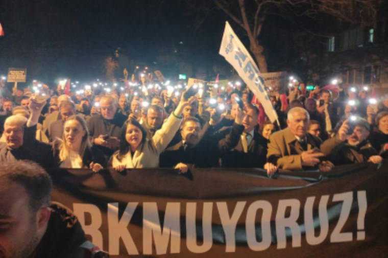 Trabzon’da İmamoğlu'nun gözaltına alınmasından sonra başlatılan Adalet Yürüyüşü’ne katılan yurttaşlar; “Hak, hukuk, adalet” şeklinde slogan attı.