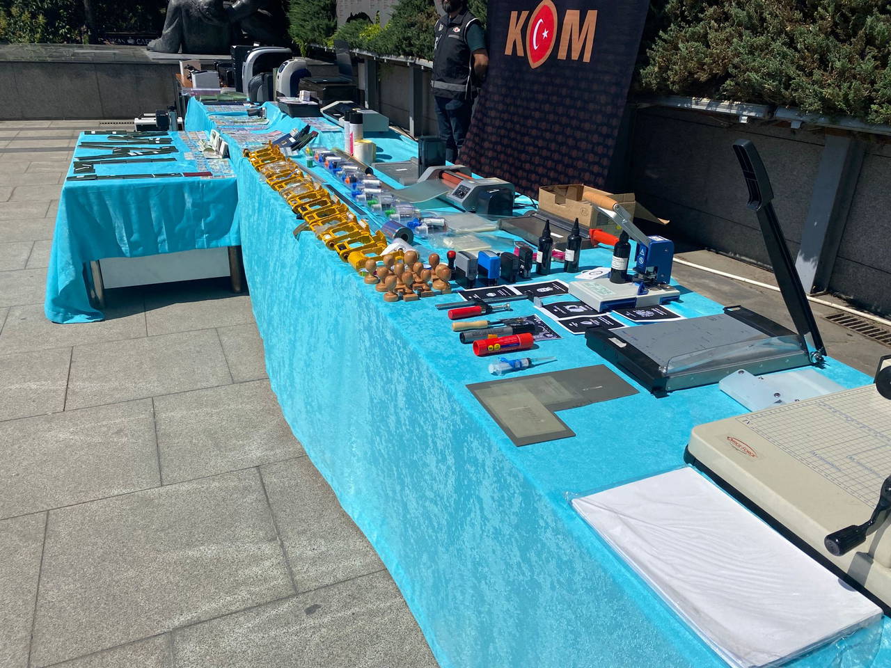 Operasyonlarda, 373 adet sahte pasaport, 288 adet sahte kimlik, 5 adet kart basma cihazı, 2 adet kart baskı makinesi, 5 adet yazıcı, 5 adet kimlik kaplama cihazı, 4 adet kesme makinesi, 2 adet fotokopi makinesi, 2 adet kart okuma cihazı, 5 adet mor ışık cihazı, 2 adet tabanca, ehliyet ve oturum kartları ile bu belgelerin yapımında kullanılan 3 adet bilgisayar ve çok sayıda materyal ele geçirildi.