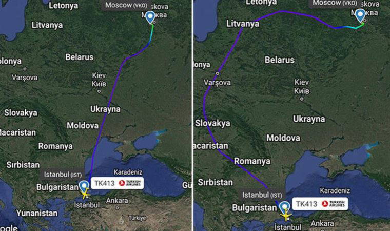 İstanbul ile Moskova arasındaki uçuş süresi normalde 2 saat 30 dakika civarındayken, hava sahasının kapanması nedeniyle bu süre 3 buçuk saate çıktı. Türk Hava Yolları'nın bugün İstanbul'dan kalkan TK413 sayılı uçağı, Doğu Avrupa rotasını izleyerek 3 saat 35 dakika sonra Moskova'ya iniş yaptı. Eski ve yeni uçuş rotası anlık uçuş takip sitesi fligthradar'daki verilere de yansıdı.