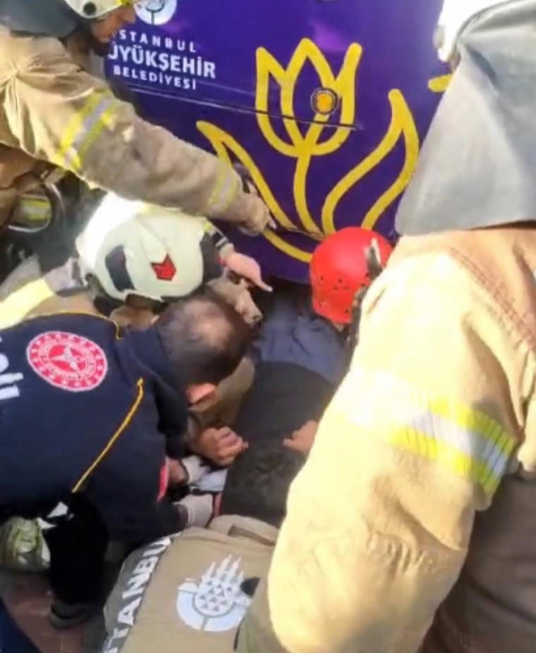 İtfaiye ekiplerince sıkıştığı yerden kurtarılan yaralı, sağlık görevlilerinin ilk müdahalesinin ardından hastaneye götürüldü.