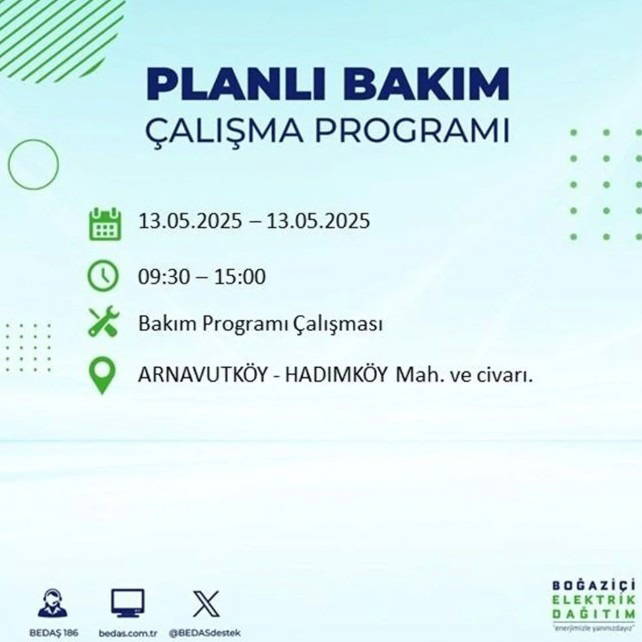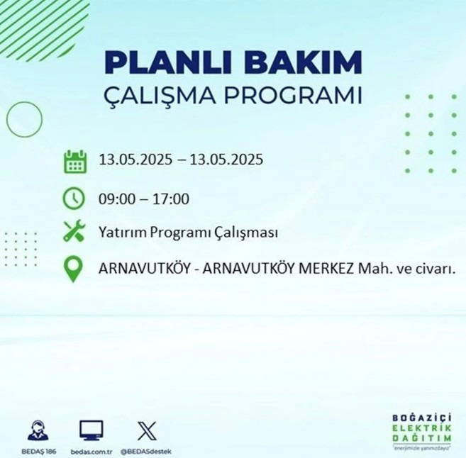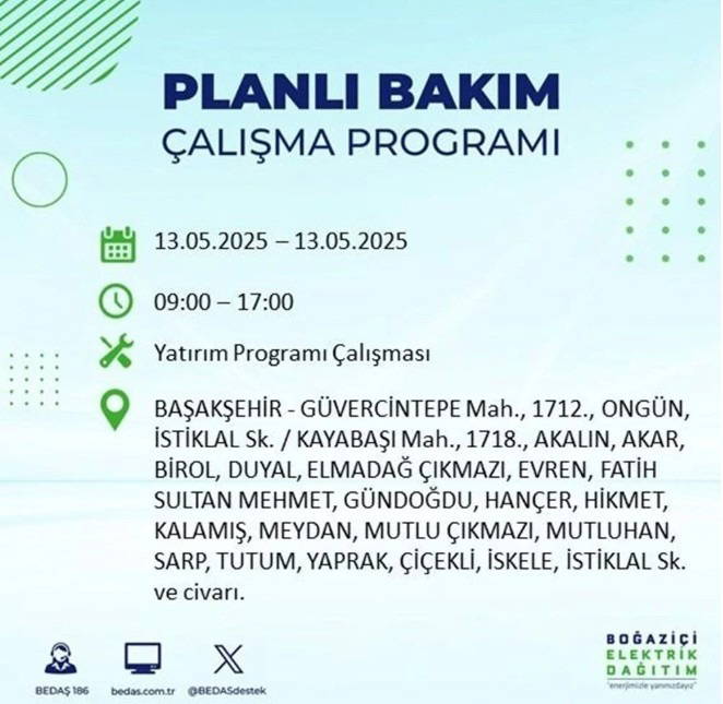 Her ilçedeki kesinti saatleri ve etkilenecek mahalle ve sokakların tam listesine BEDAŞ’ın resmi internet sitesi üzerinden ulaşılabiliyor. Yurttaşların kesintilerden etkilenmemek adına planlamalarını buna göre yapmaları öneriliyor.