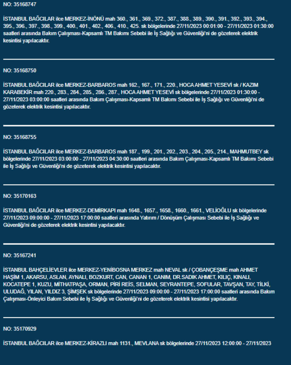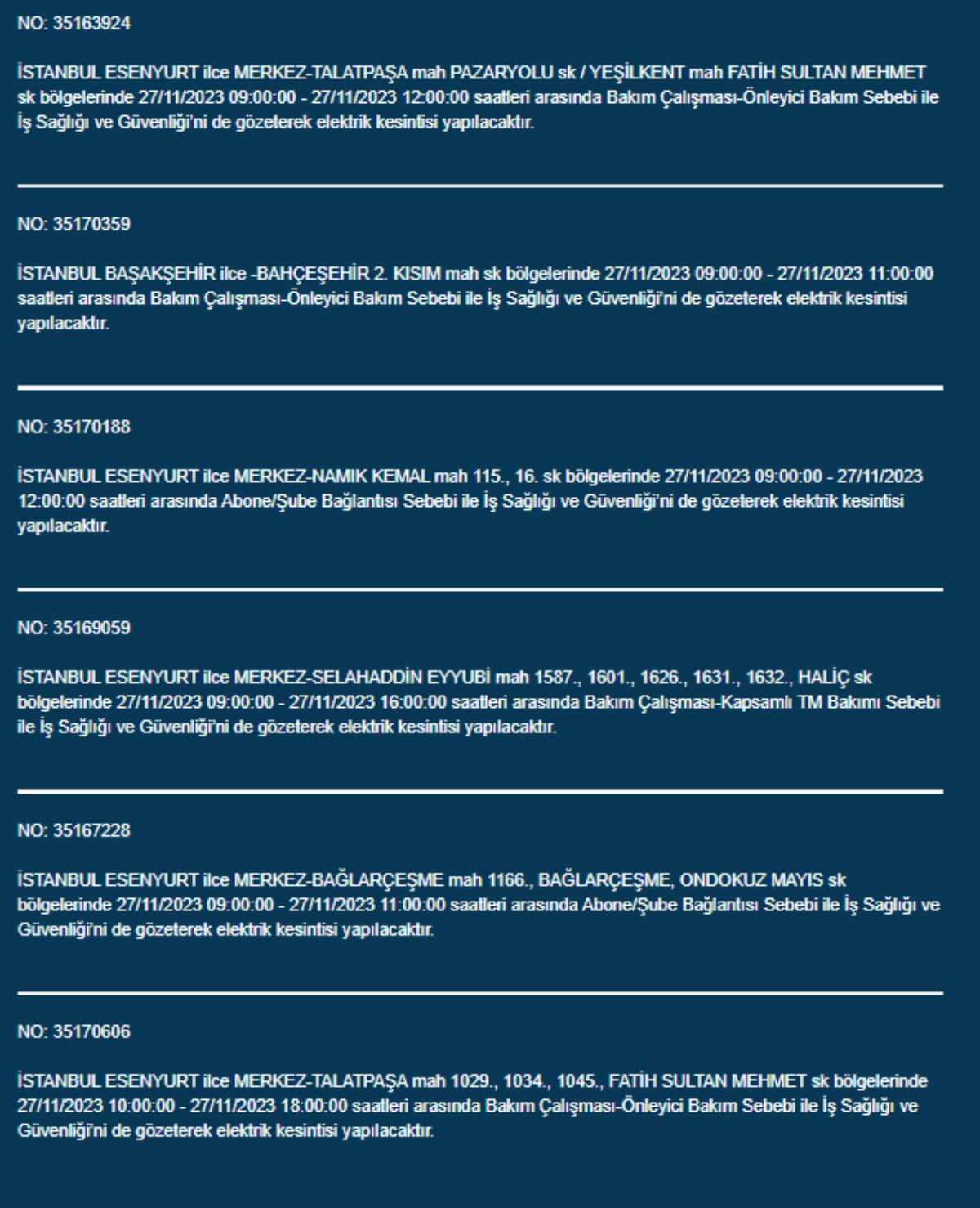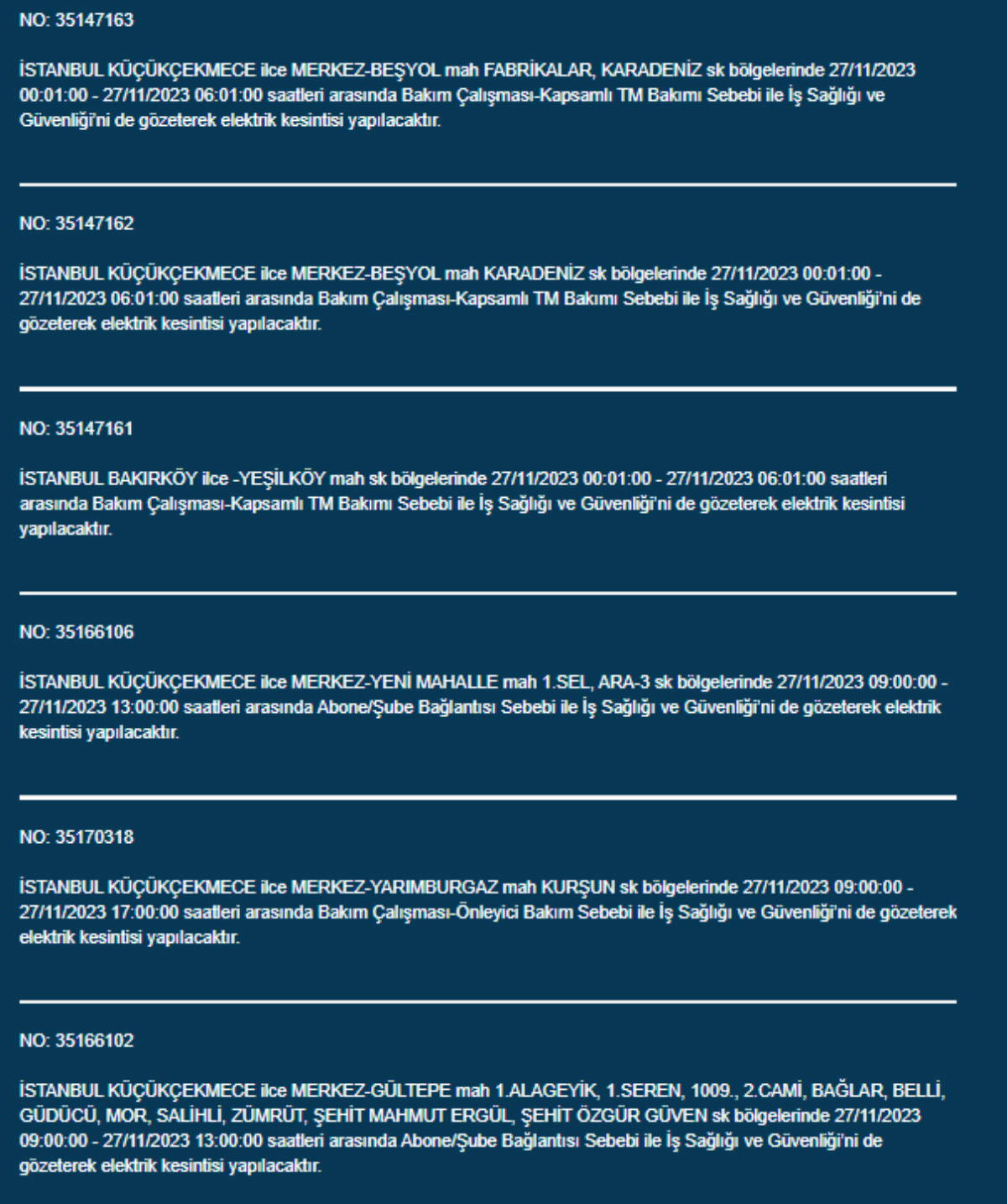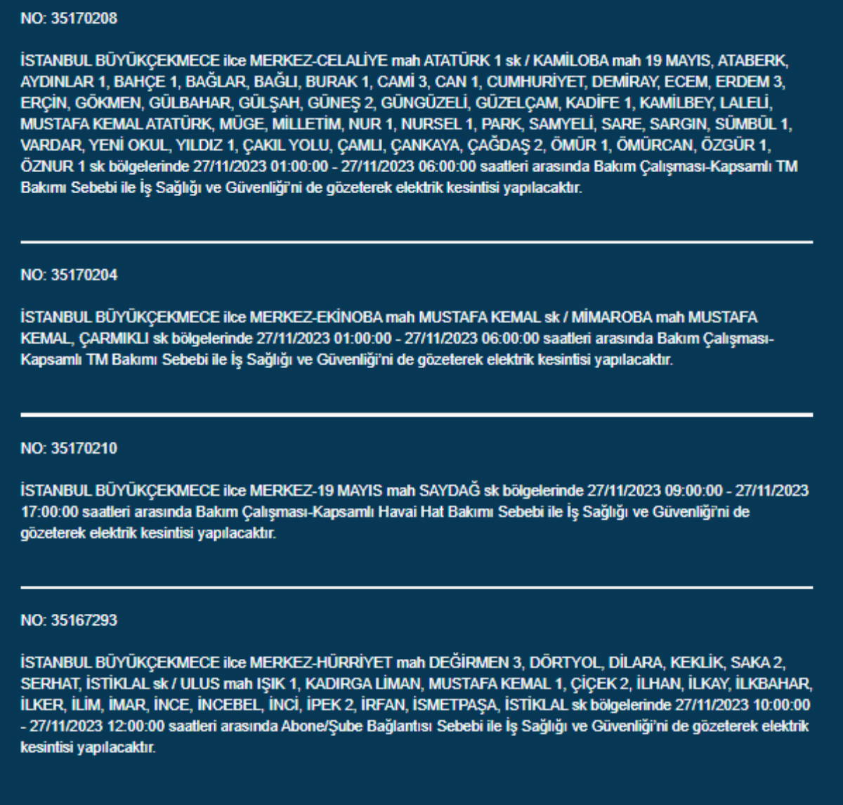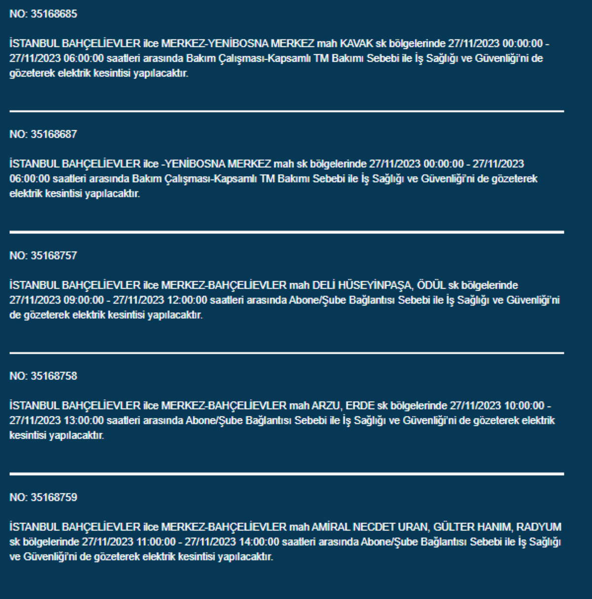 Boğaziçi Elektrik Dağıtım A.Ş, (BEDAŞ) İstanbul'da 27 Kasım Pazartesi günü elektrik kesintileri uygulanacak ilçe ve sokakları paylaştı. Yurttaşlar, nerede elektriklerin kesileceğini ve ne zaman geleceğini merak etti. Peki, 27 Kasım Pazartesi elektrik kesintilerinin yapılacağı ilçeler hangileri? İstanbul'da elektrikler ne zaman gelecek?