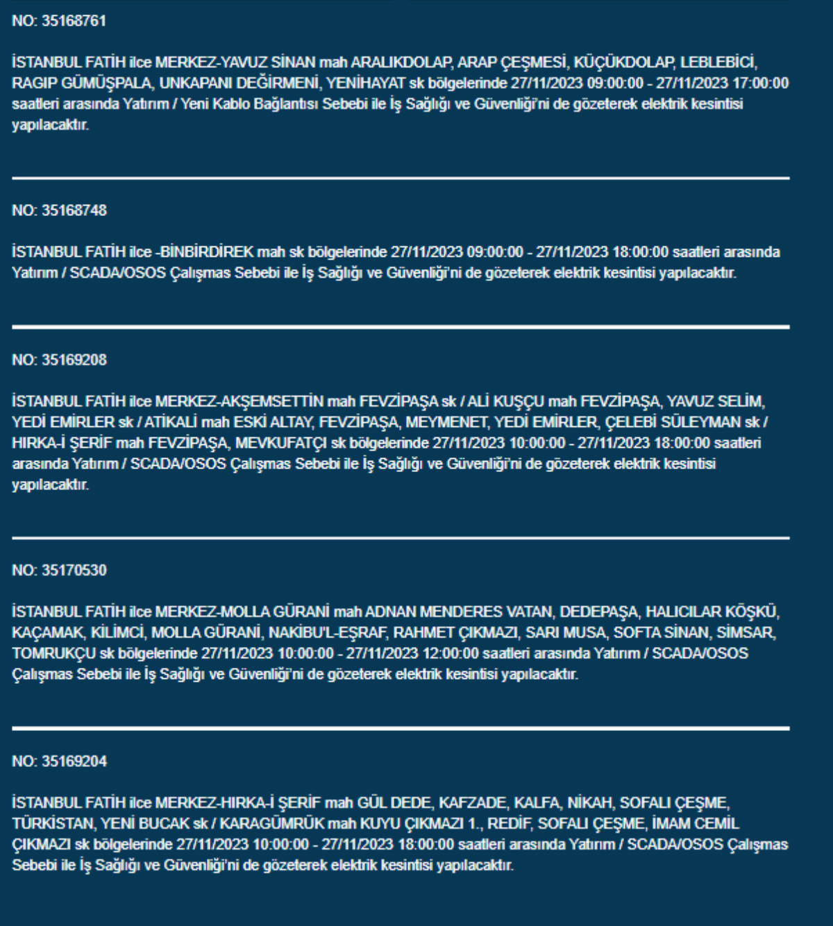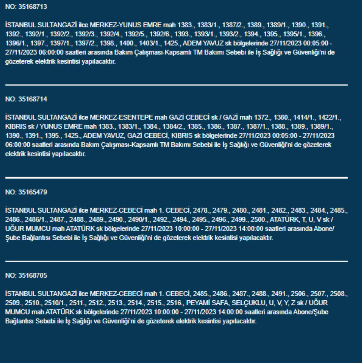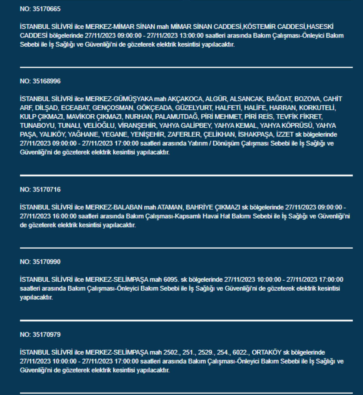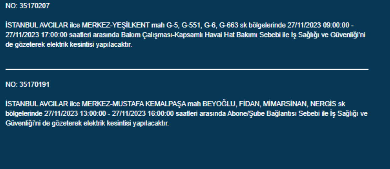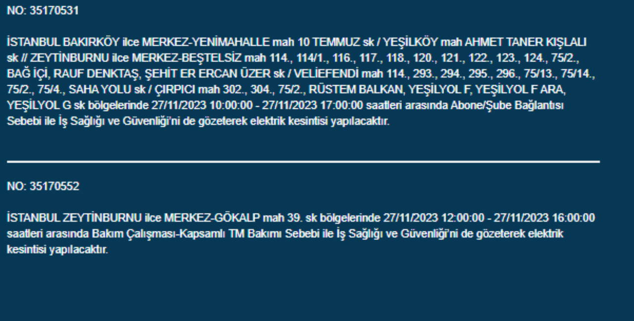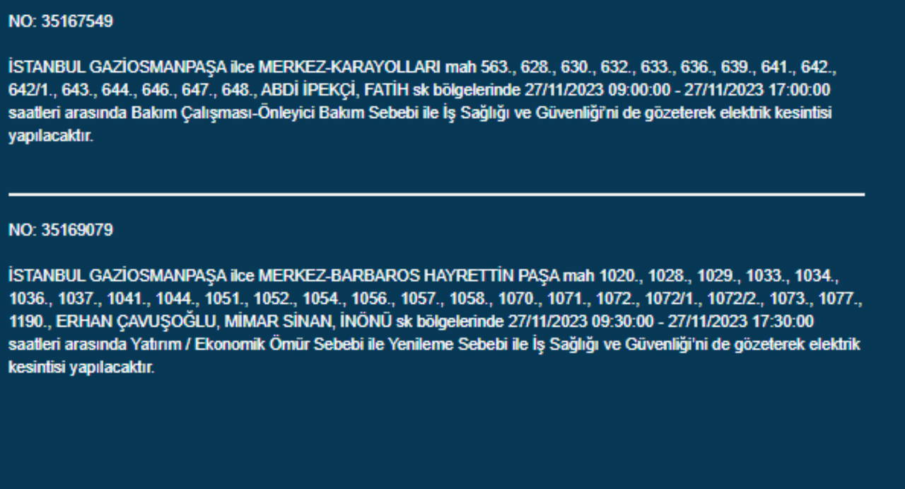 Boğaziçi Elektrik Dağıtım A.Ş, (BEDAŞ) İstanbul'da 27 Kasım Pazartesi günü elektrik kesintileri uygulanacak ilçe ve sokakları paylaştı. Yurttaşlar, nerede elektriklerin kesileceğini ve ne zaman geleceğini merak etti. Peki, 27 Kasım Pazartesi elektrik kesintilerinin yapılacağı ilçeler hangileri? İstanbul'da elektrikler ne zaman gelecek?