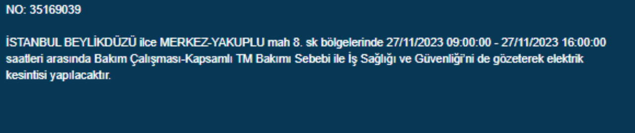 ANADOLU YAKASI ELEKTRİK KESİNTİSİ