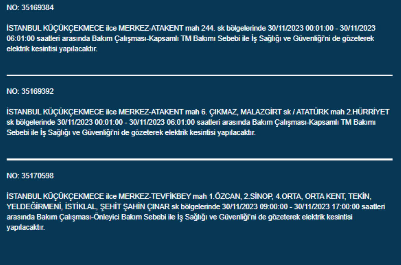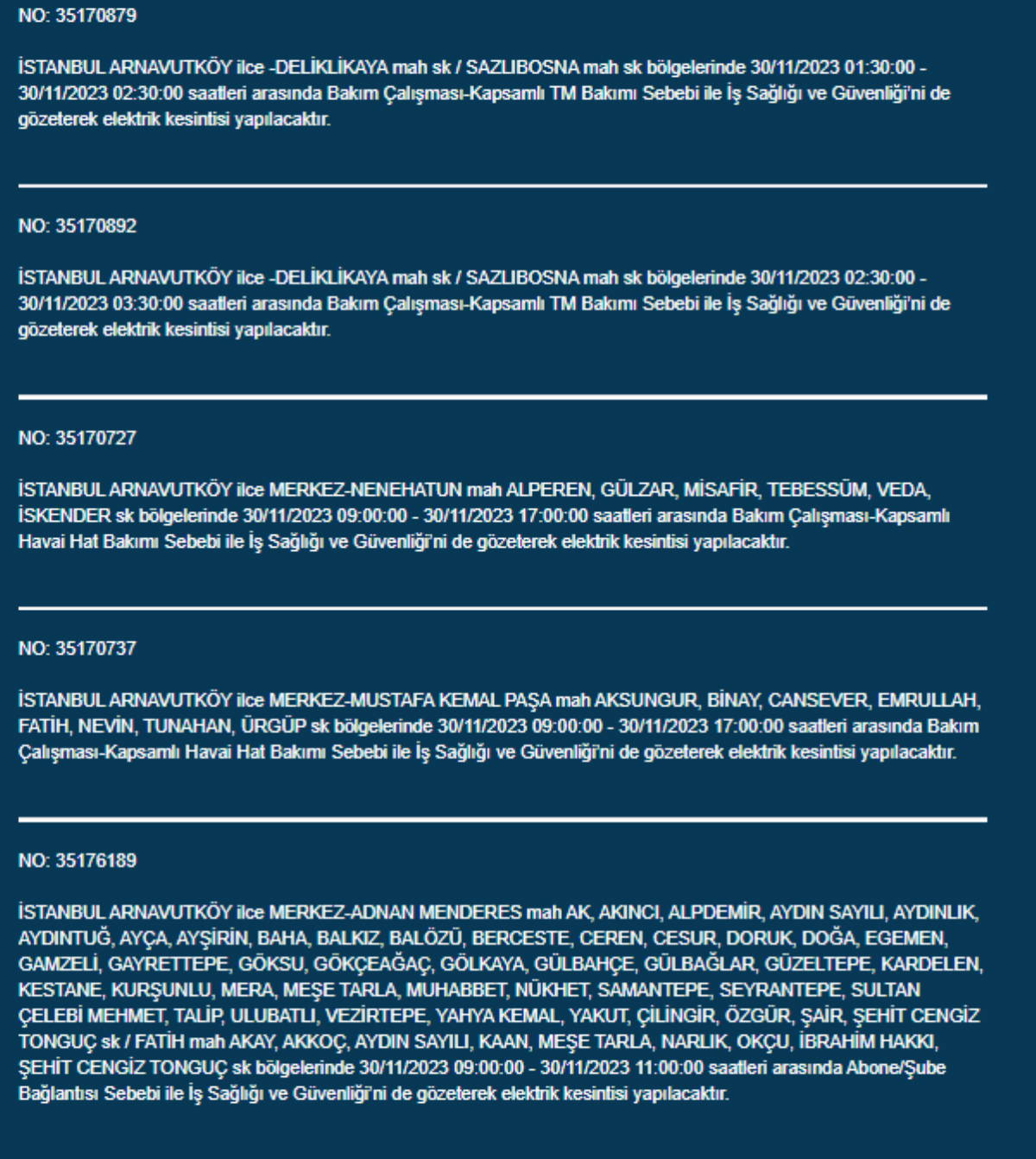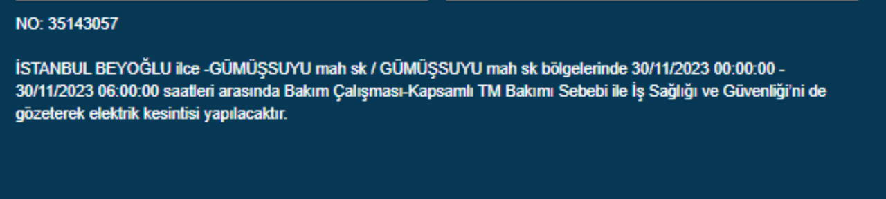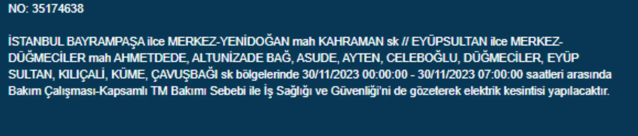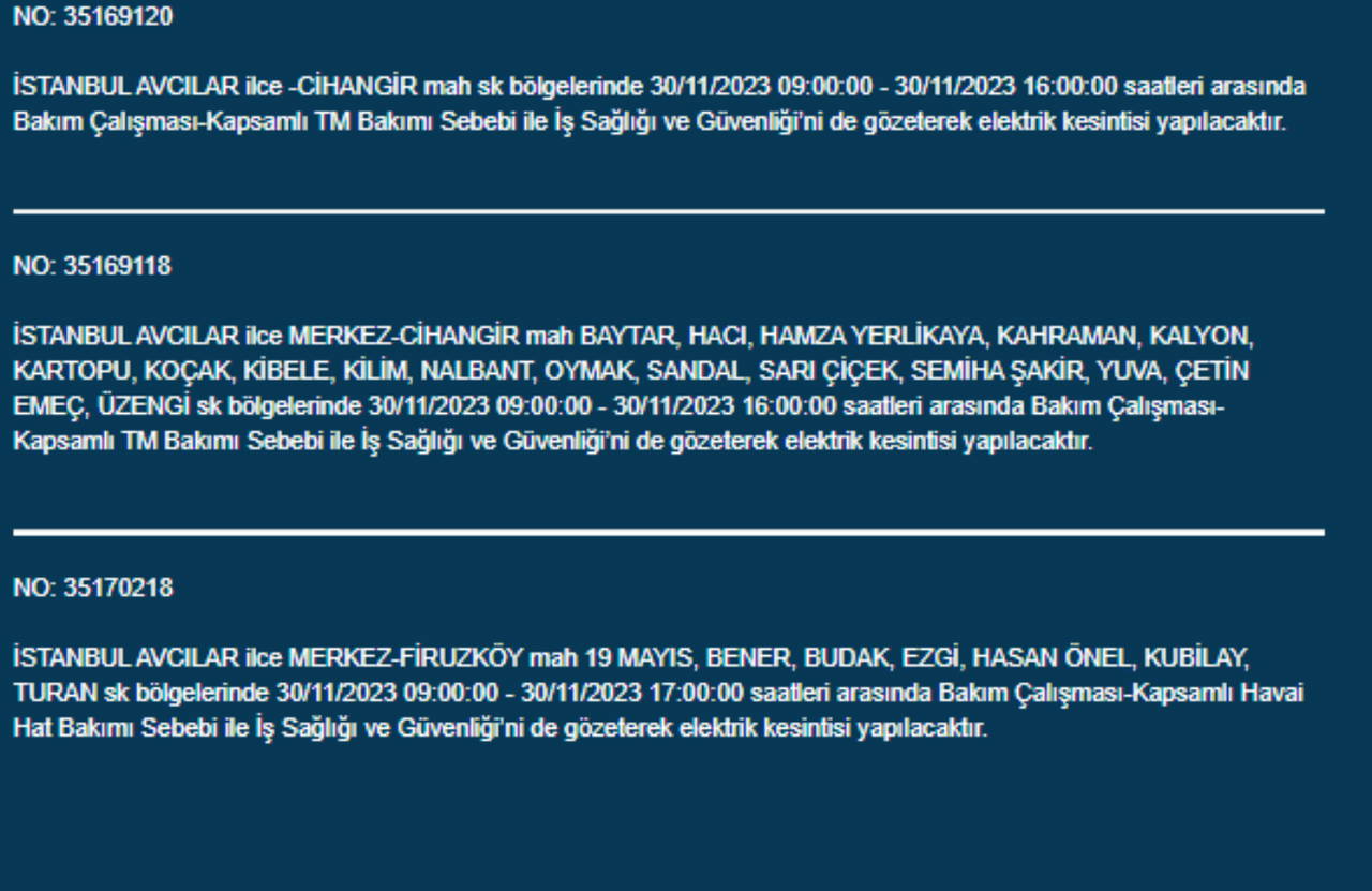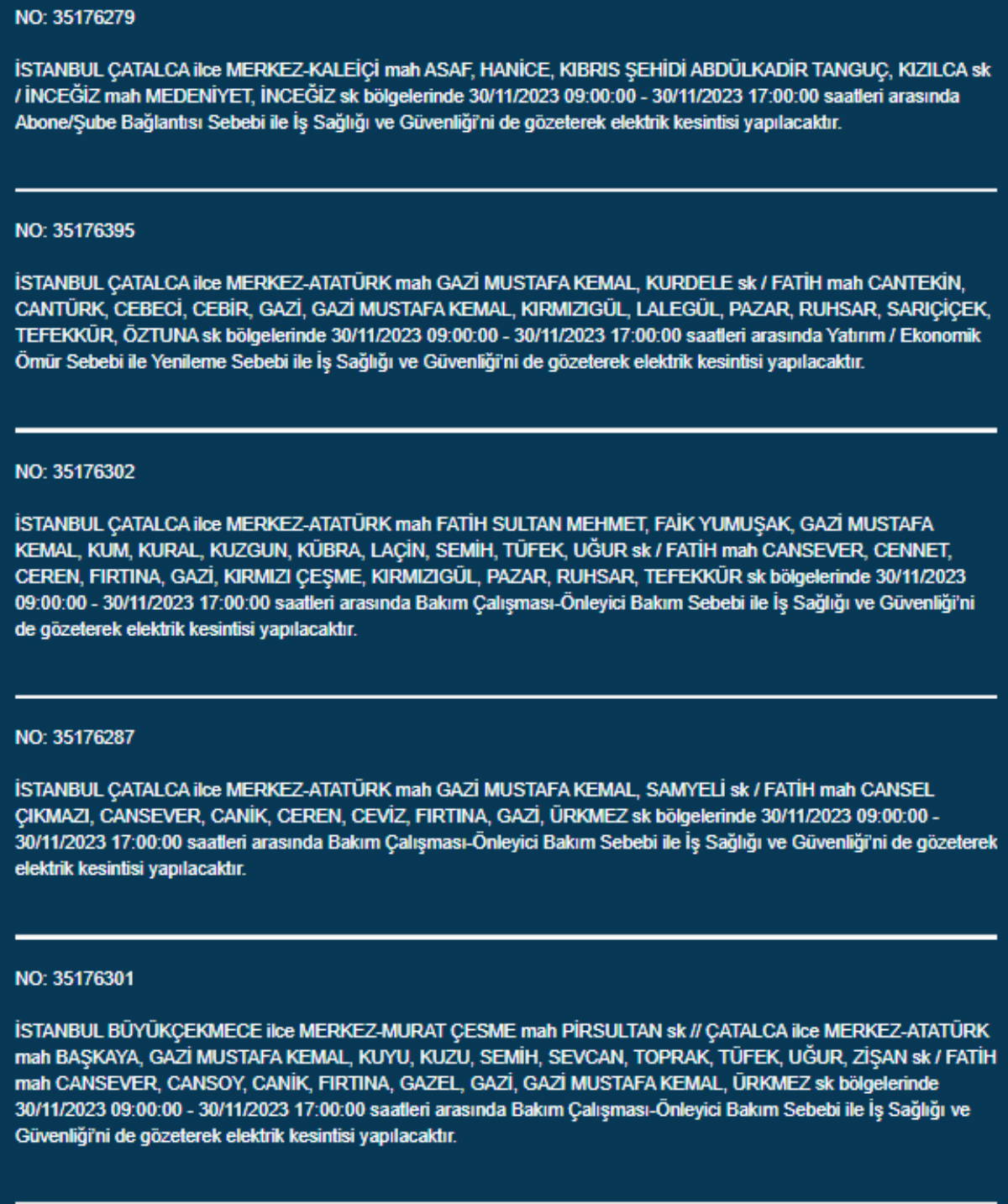 Boğaziçi Elektrik Dağıtım A.Ş, (BEDAŞ) İstanbul'da 30 Kasım Perşembe günü elektrik kesintileri uygulanacak ilçe ve sokakları paylaştı. Yurttaşlar, nerede elektriklerin kesileceğini ve ne zaman geleceğini merak etti. Peki, 30 Kasım Perşembe elektrik kesintilerinin yapılacağı ilçeler hangileri? İstanbul'da elektrikler ne zaman gelecek?