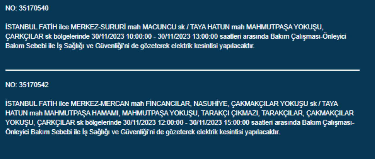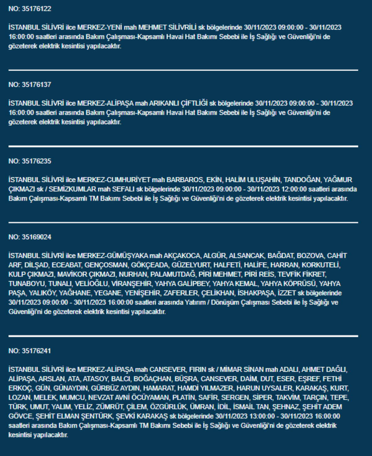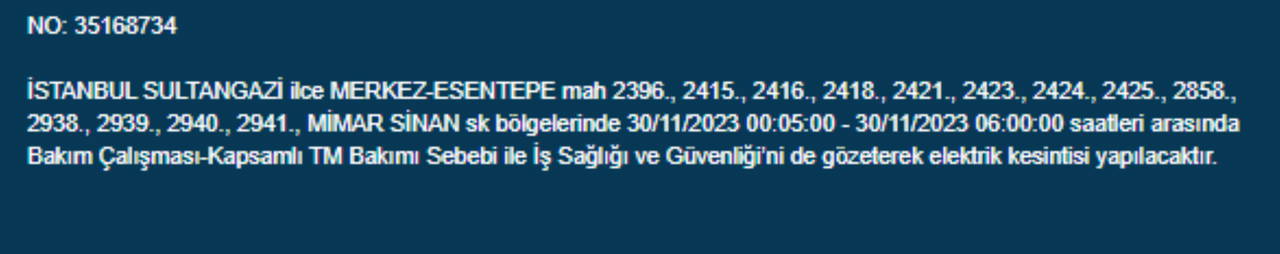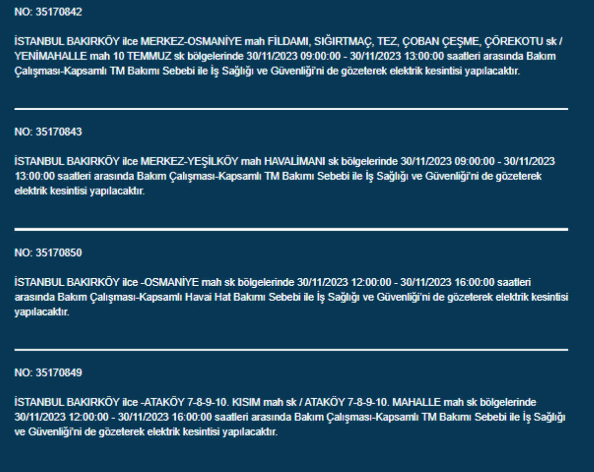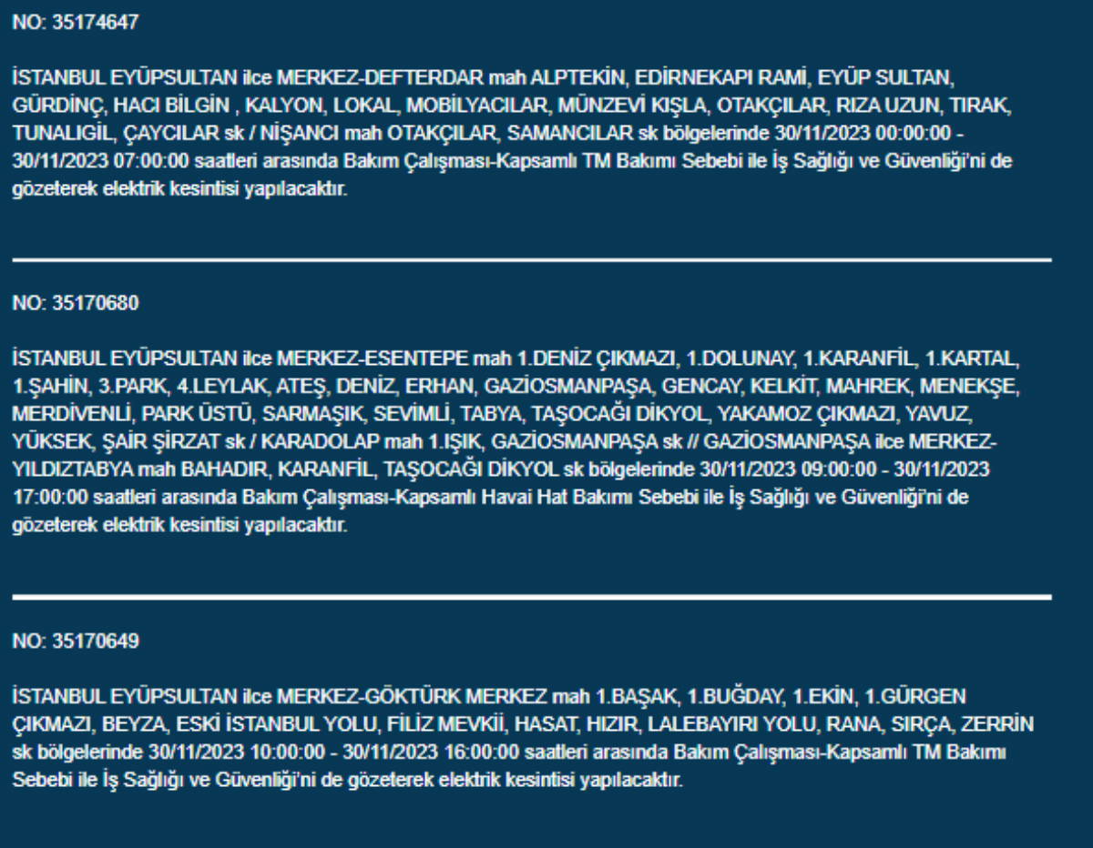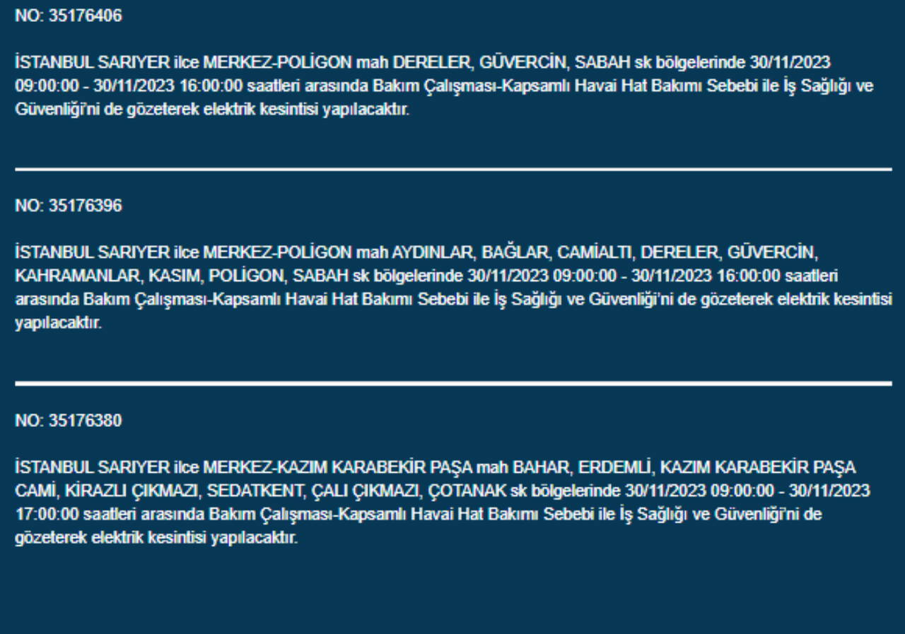 Boğaziçi Elektrik Dağıtım A.Ş, (BEDAŞ) İstanbul'da 30 Kasım Perşembe günü elektrik kesintileri uygulanacak ilçe ve sokakları paylaştı. Yurttaşlar, nerede elektriklerin kesileceğini ve ne zaman geleceğini merak etti. Peki, 30 Kasım Perşembe elektrik kesintilerinin yapılacağı ilçeler hangileri? İstanbul'da elektrikler ne zaman gelecek?