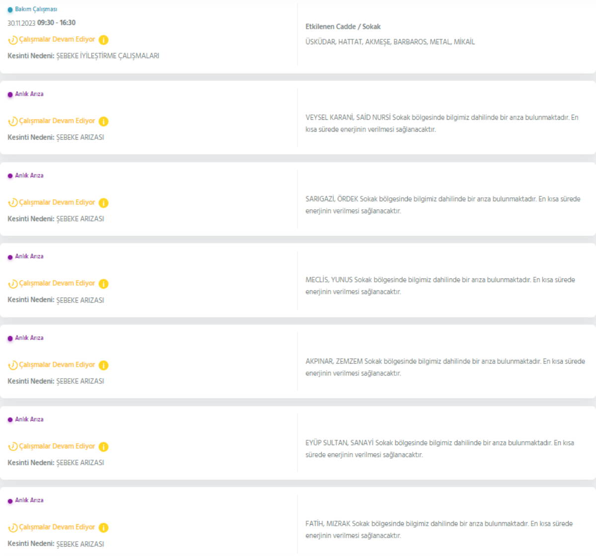 ANADOLU YAKASI ELEKTRİK KESİNTİSİ