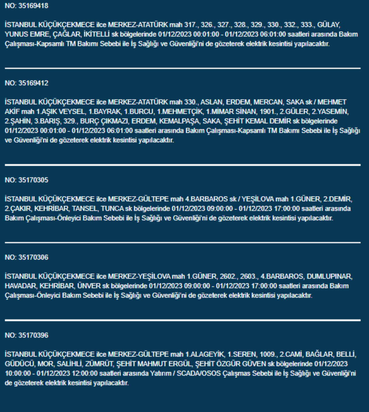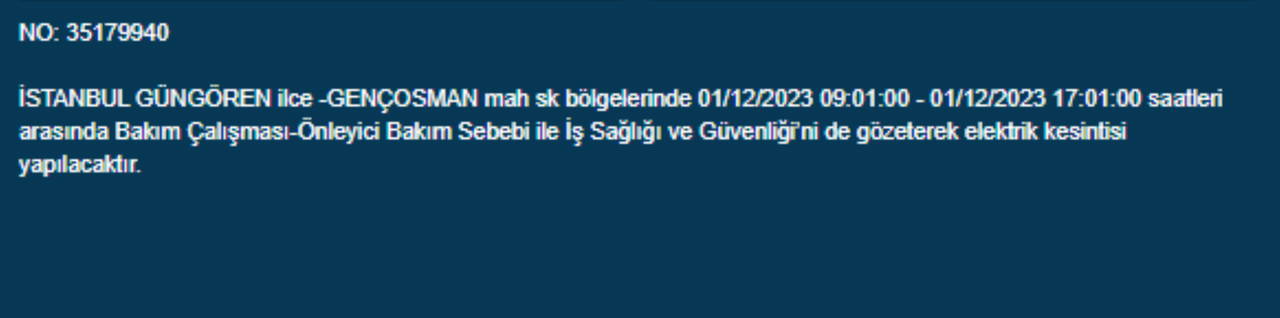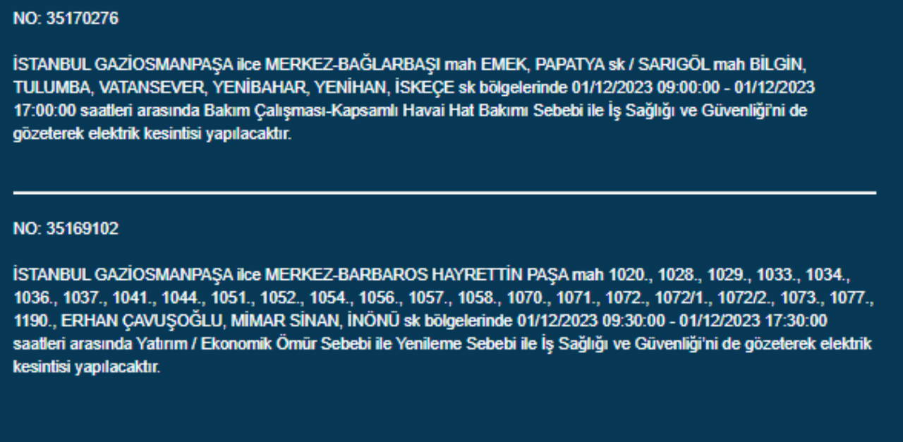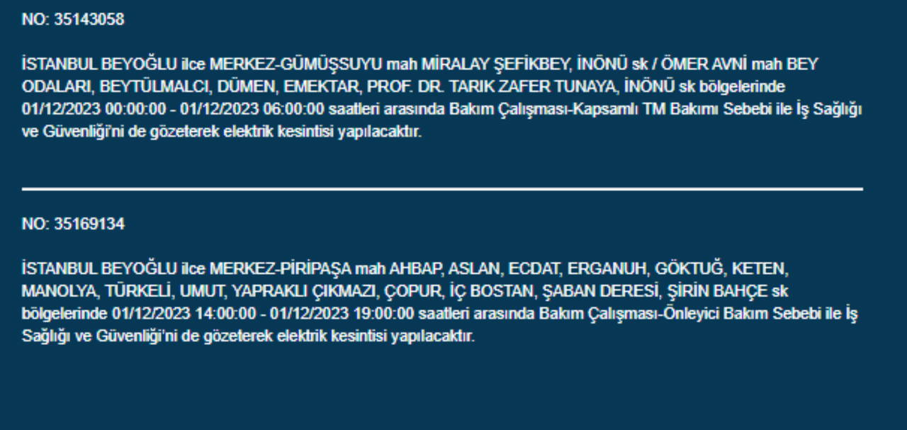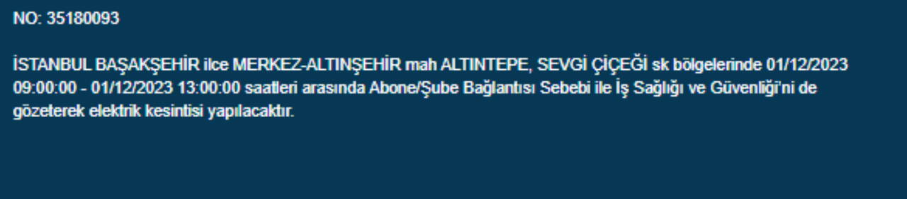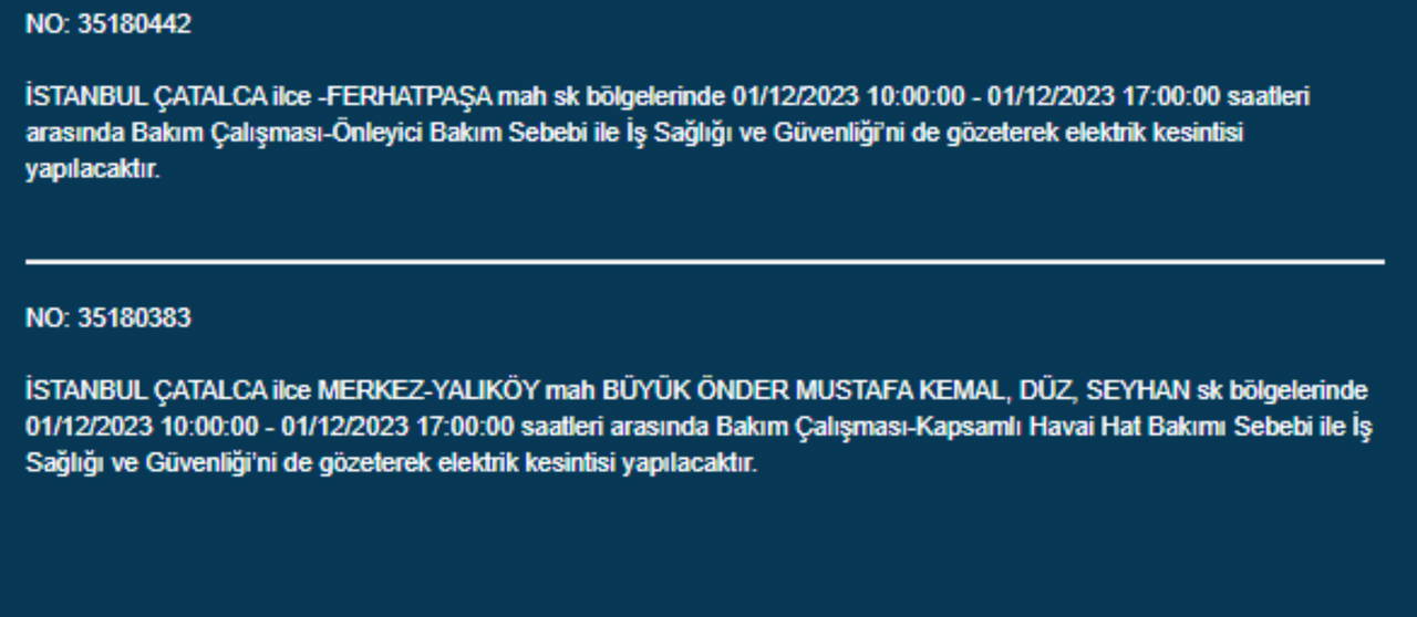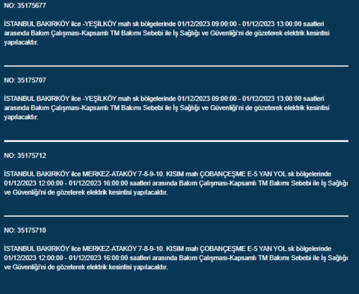 Boğaziçi Elektrik Dağıtım A.Ş, (BEDAŞ) İstanbul'da 1 Cuma Aralık günü elektrik kesintileri uygulanacak ilçe ve sokakları paylaştı. Yurttaşlar, nerede elektriklerin kesileceğini ve ne zaman geleceğini merak etti. Peki, 1 Aralık Cuma elektrik kesintilerinin yapılacağı ilçeler hangileri? İstanbul'da elektrikler ne zaman gelecek?