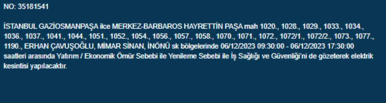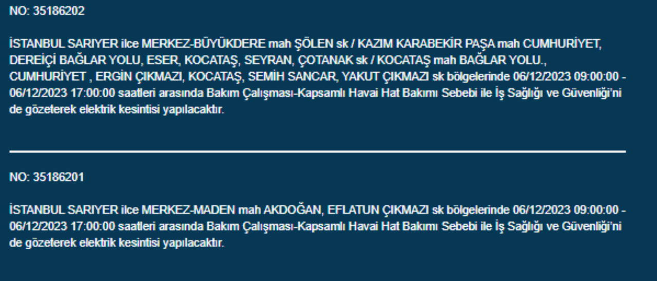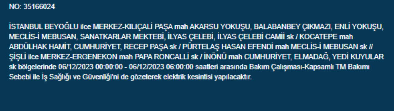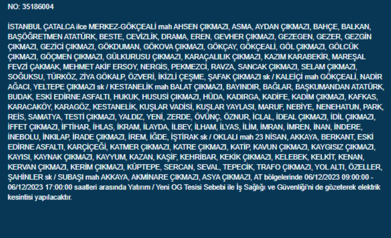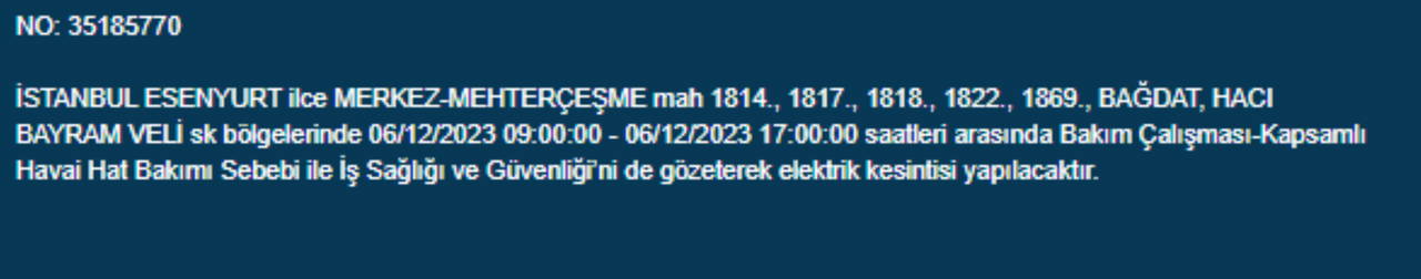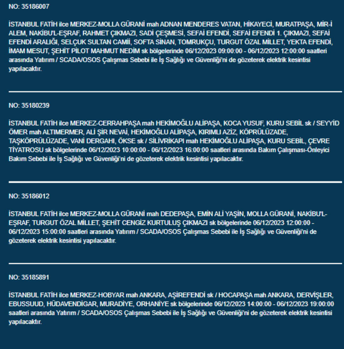 Boğaziçi Elektrik Dağıtım A.Ş, (BEDAŞ) İstanbul'da 6 Aralık Çarşamba günü elektrik kesintileri uygulanacak ilçe ve sokakları paylaştı. Yurttaşlar, nerede elektriklerin kesileceğini ve ne zaman geleceğini merak etti. Peki, İstanbul'da bugün elektrik kesintisi yaşanacak ilçeler hangileri? İstanbul'da elektrikler ne zaman gelecek?
