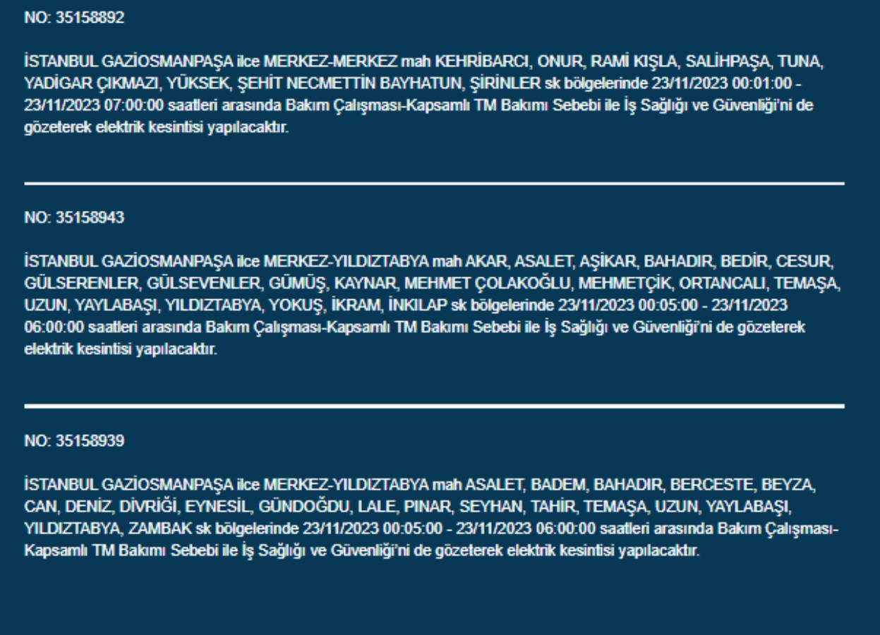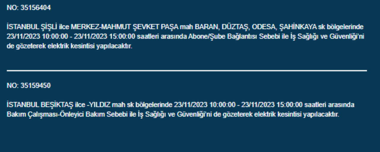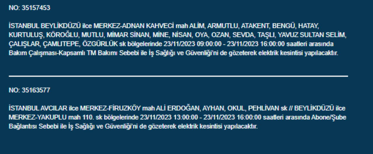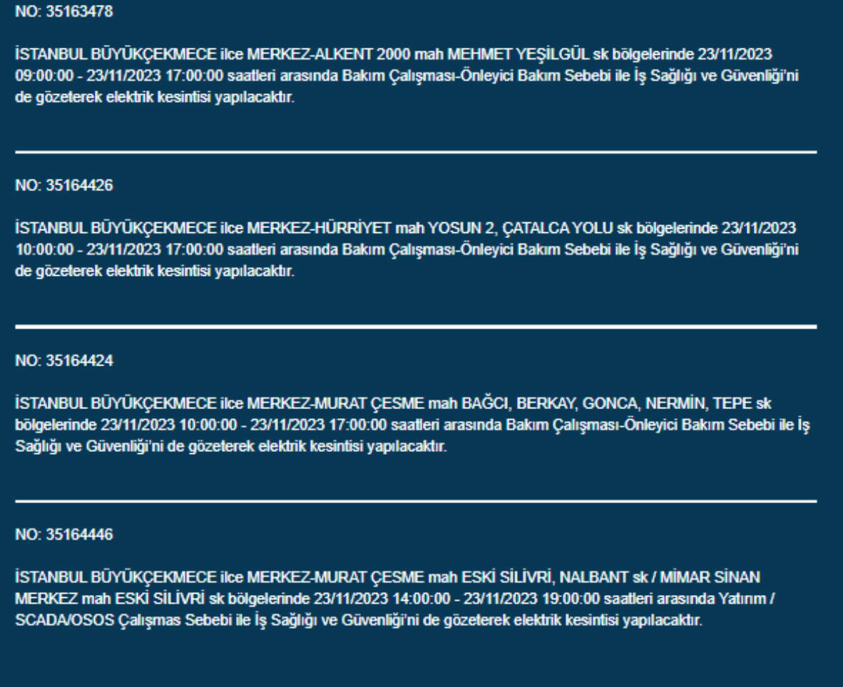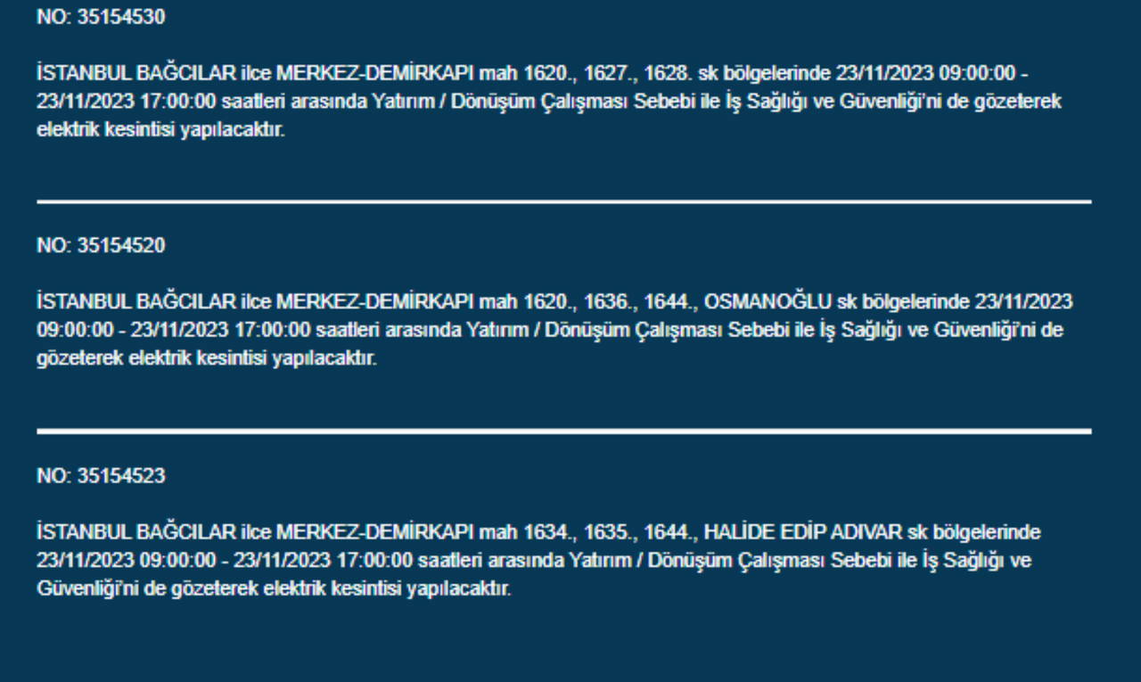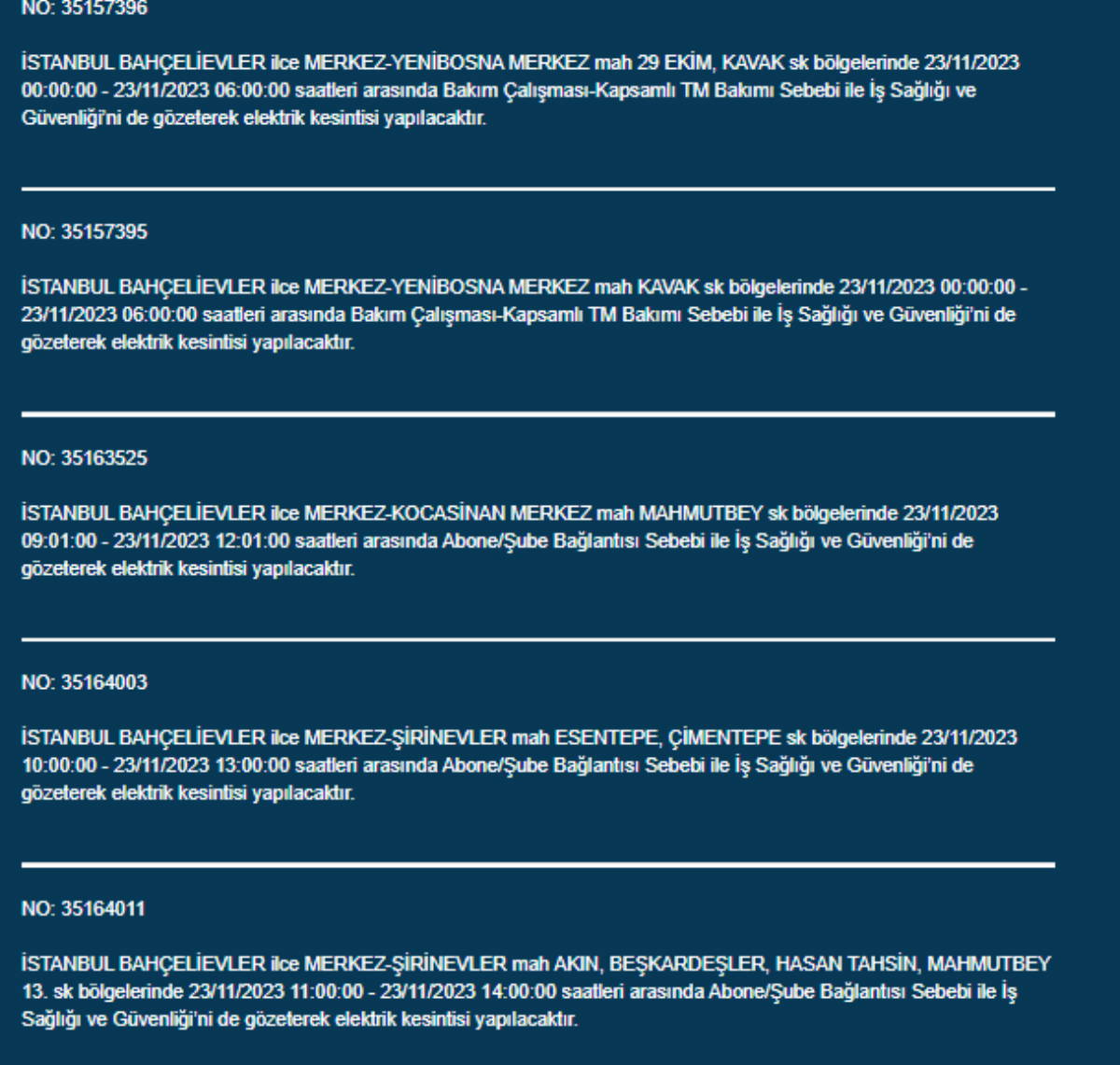 Boğaziçi Elektrik Dağıtım A.Ş, (BEDAŞ) İstanbul'da 23 Kasım Pazartesi günü elektrik kesintileri uygulanacak ilçe ve sokakları paylaştı. Yurttaşlar, nerede elektriklerin kesileceğini ve ne zaman geleceğini merak etti. Peki, 23 Kasım Pazartesi elektrik kesintilerinin yapılacağı ilçeler hangileri? İstanbul'da elektrikler ne zaman gelecek?