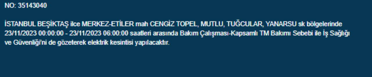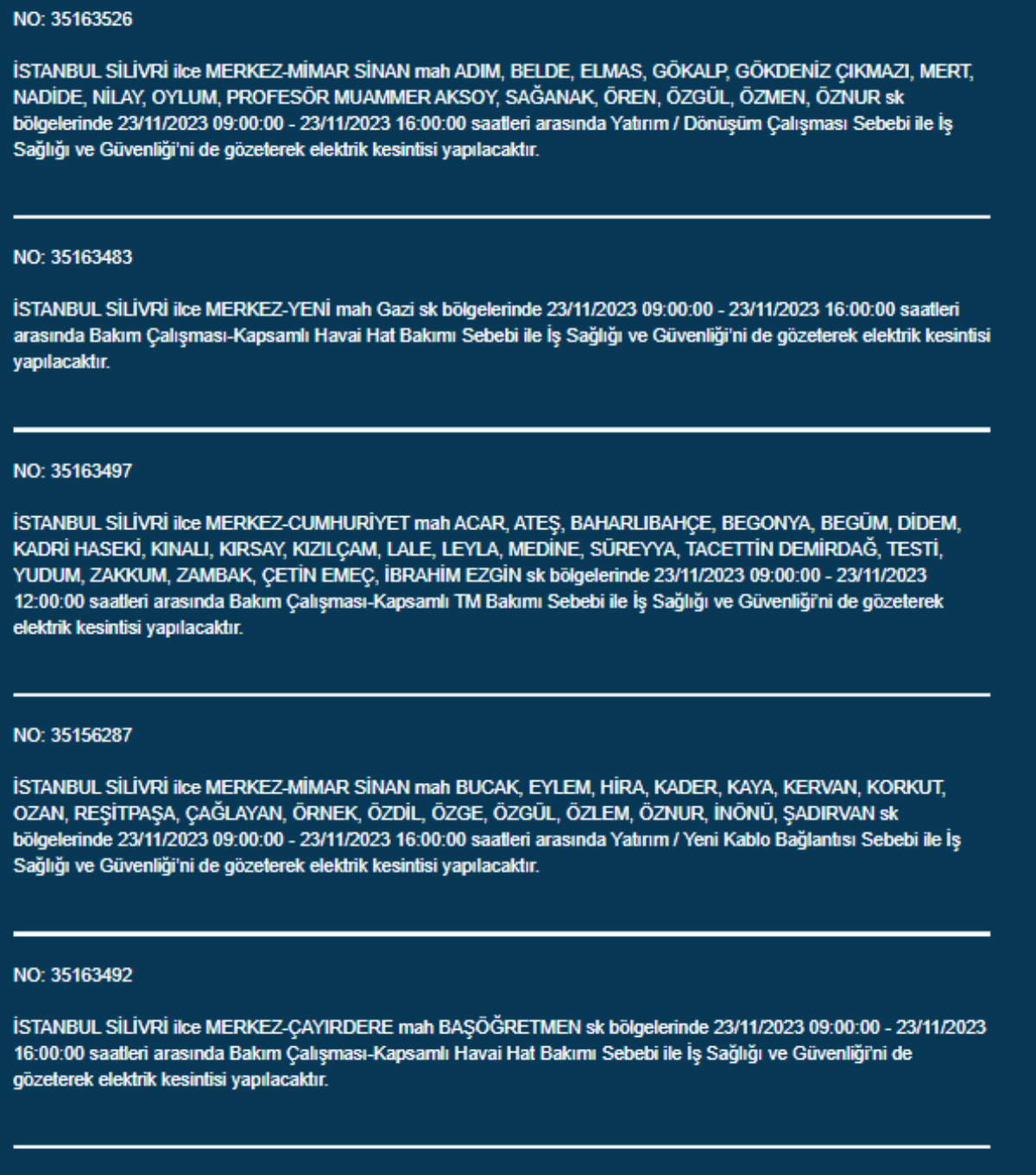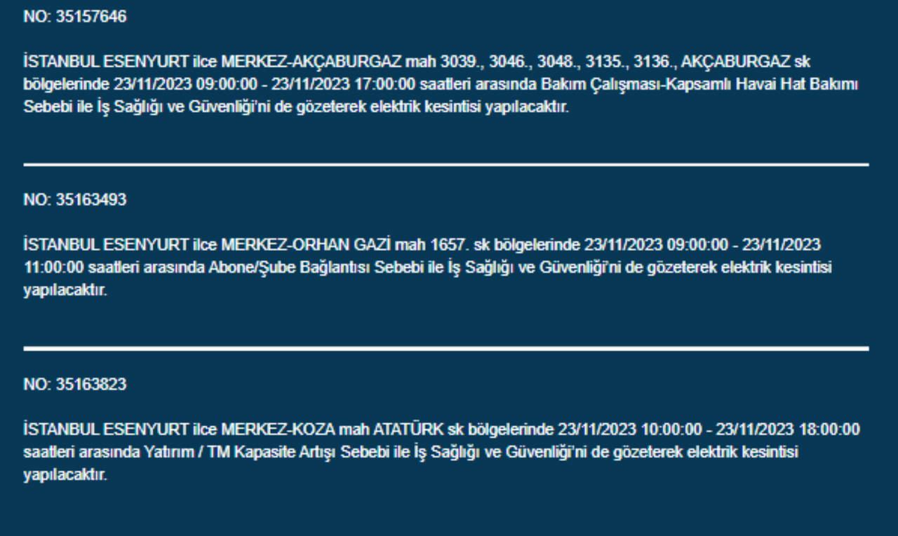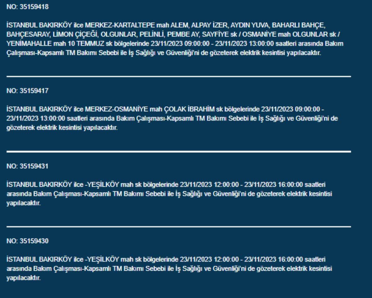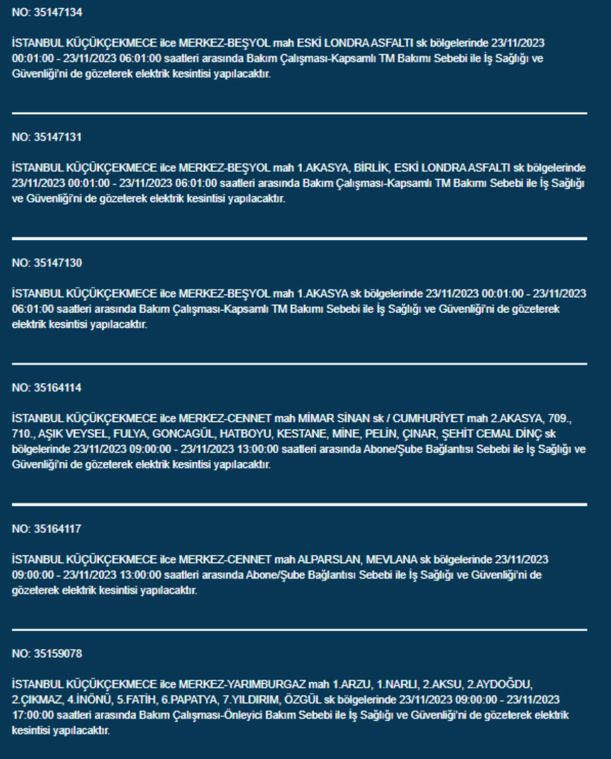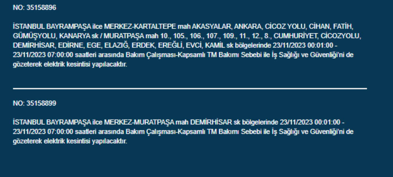 Boğaziçi Elektrik Dağıtım A.Ş, (BEDAŞ) İstanbul'da 23 Kasım Pazartesi günü elektrik kesintileri uygulanacak ilçe ve sokakları paylaştı. Yurttaşlar, nerede elektriklerin kesileceğini ve ne zaman geleceğini merak etti. Peki, 23 Kasım Pazartesi elektrik kesintilerinin yapılacağı ilçeler hangileri? İstanbul'da elektrikler ne zaman gelecek?