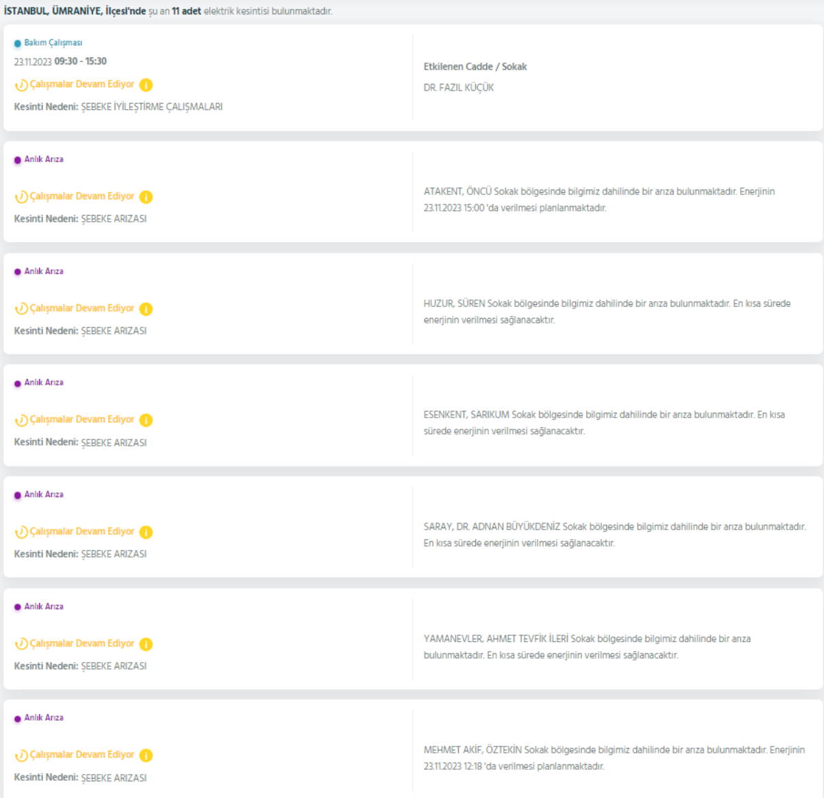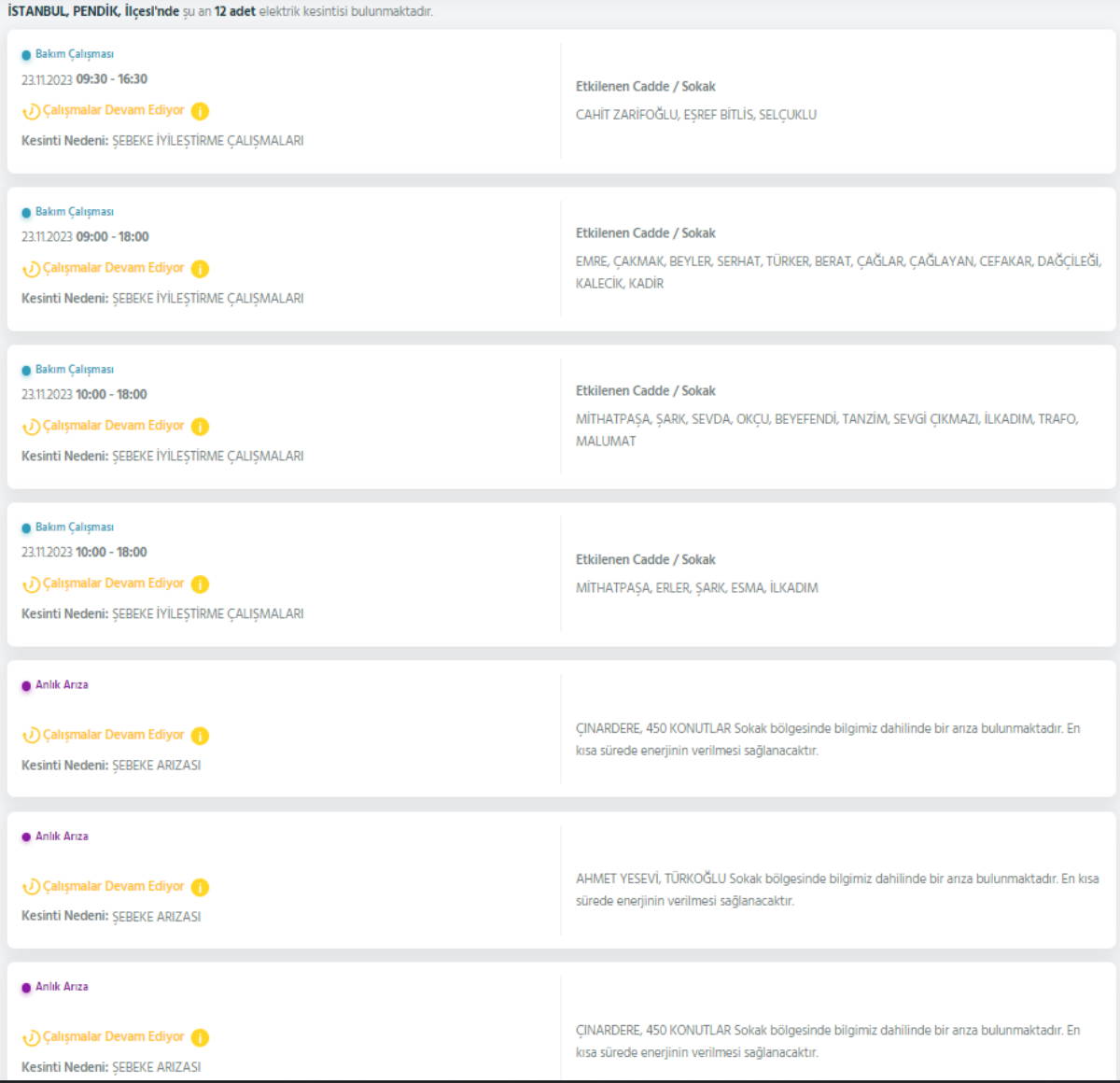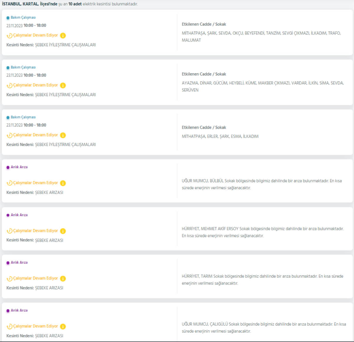 ANADOLU YAKASI ELEKTRİK KESİNTİSİ