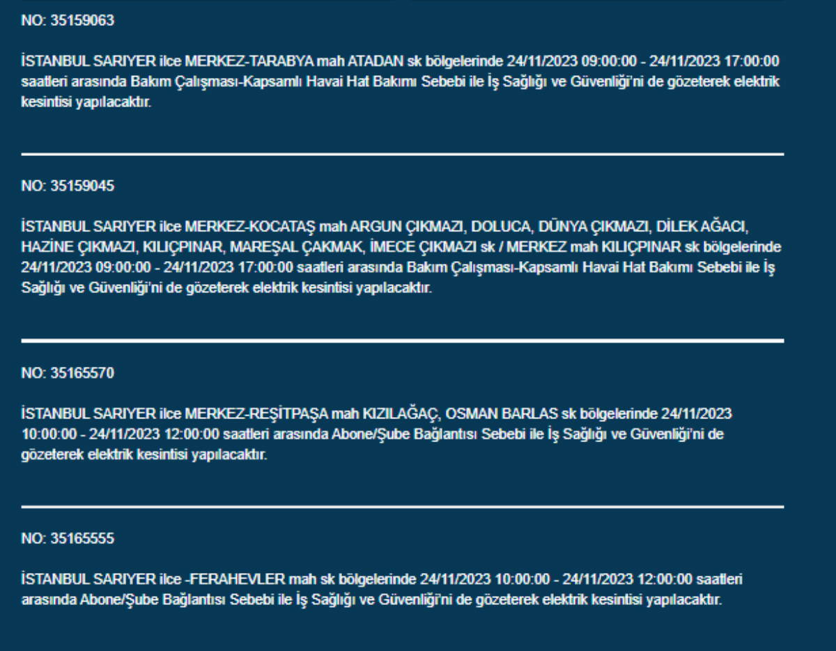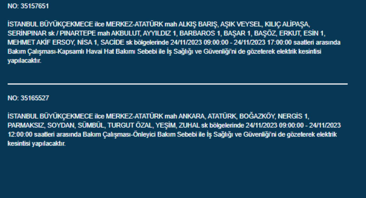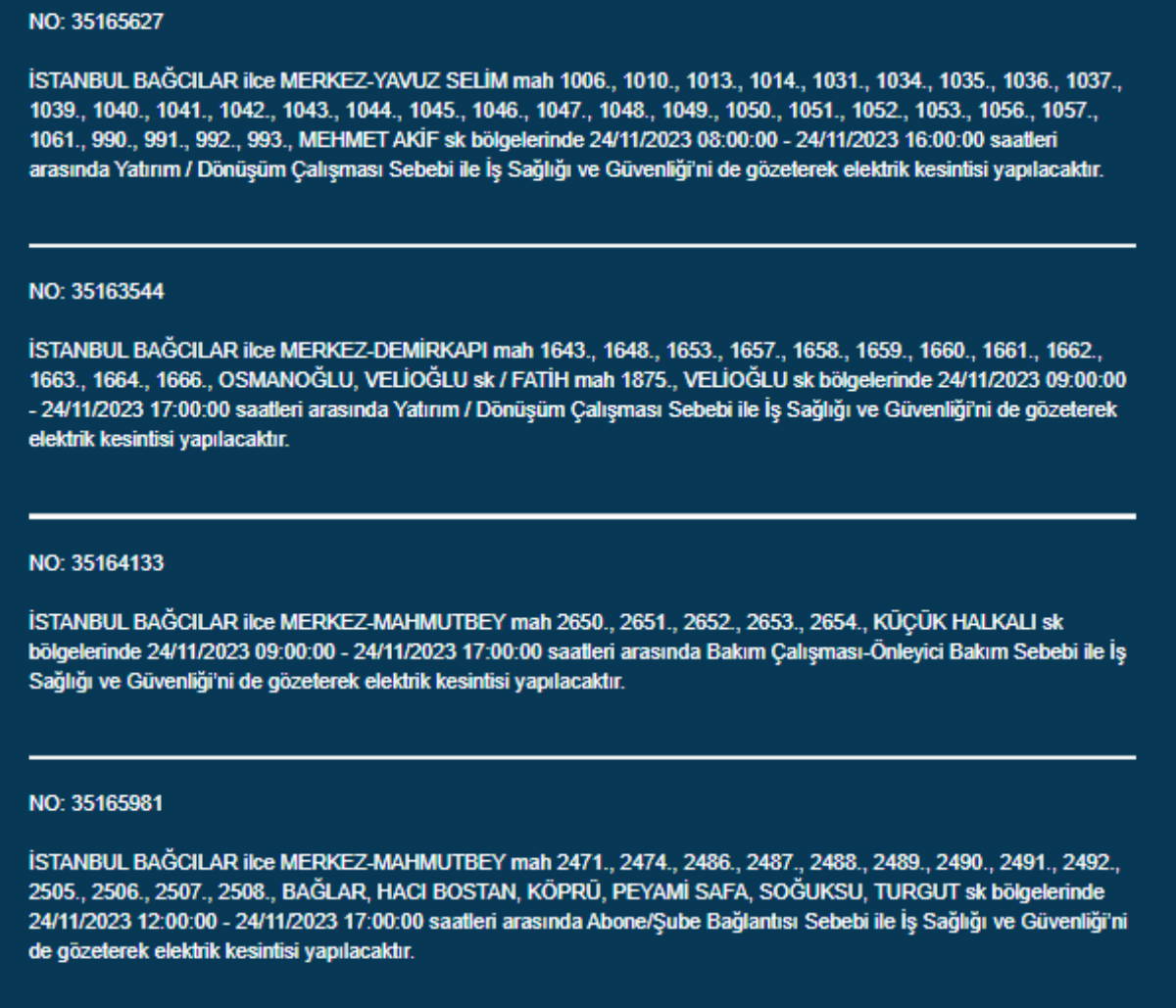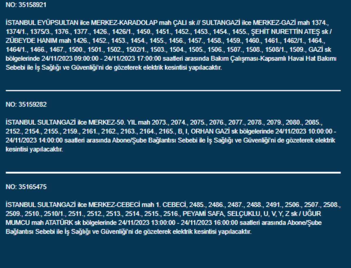 Boğaziçi Elektrik Dağıtım A.Ş, (BEDAŞ) İstanbul'da 24 Kasım Pazartesi günü elektrik kesintileri uygulanacak ilçe ve sokakları paylaştı. Yurttaşlar, nerede elektriklerin kesileceğini ve ne zaman geleceğini merak etti. Peki, 24 Kasım Pazartesi elektrik kesintilerinin yapılacağı ilçeler hangileri? İstanbul'da elektrikler ne zaman gelecek?