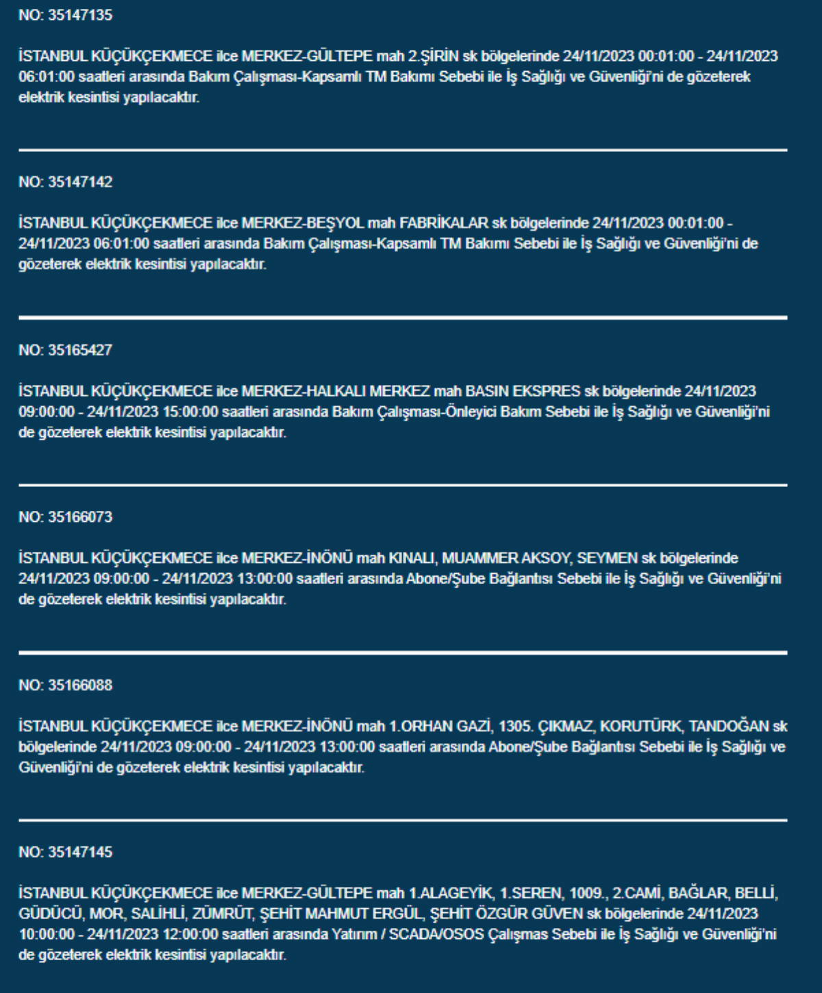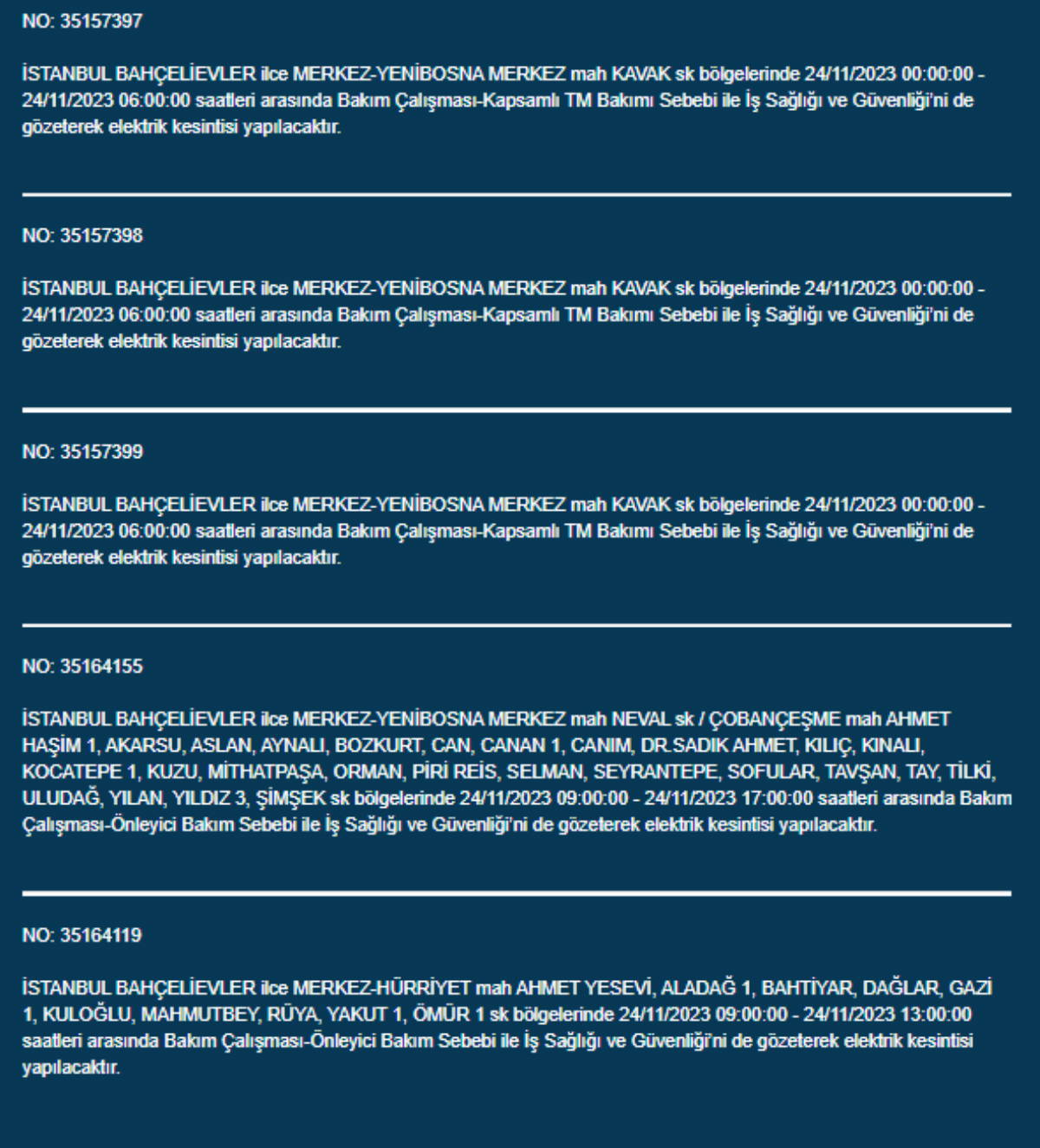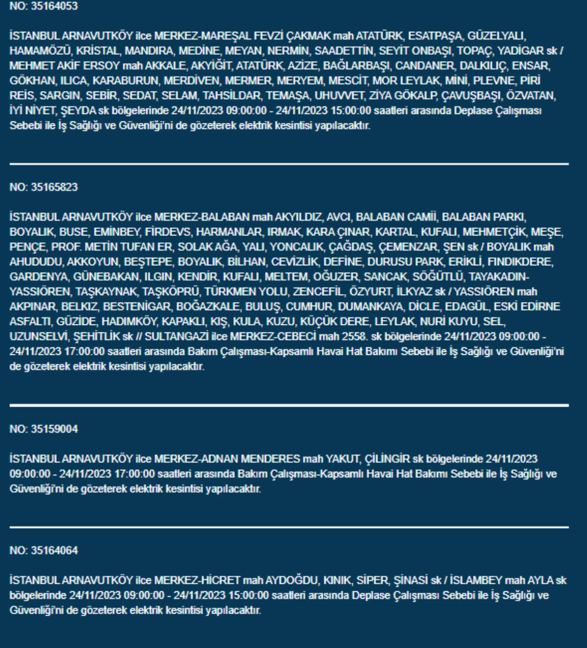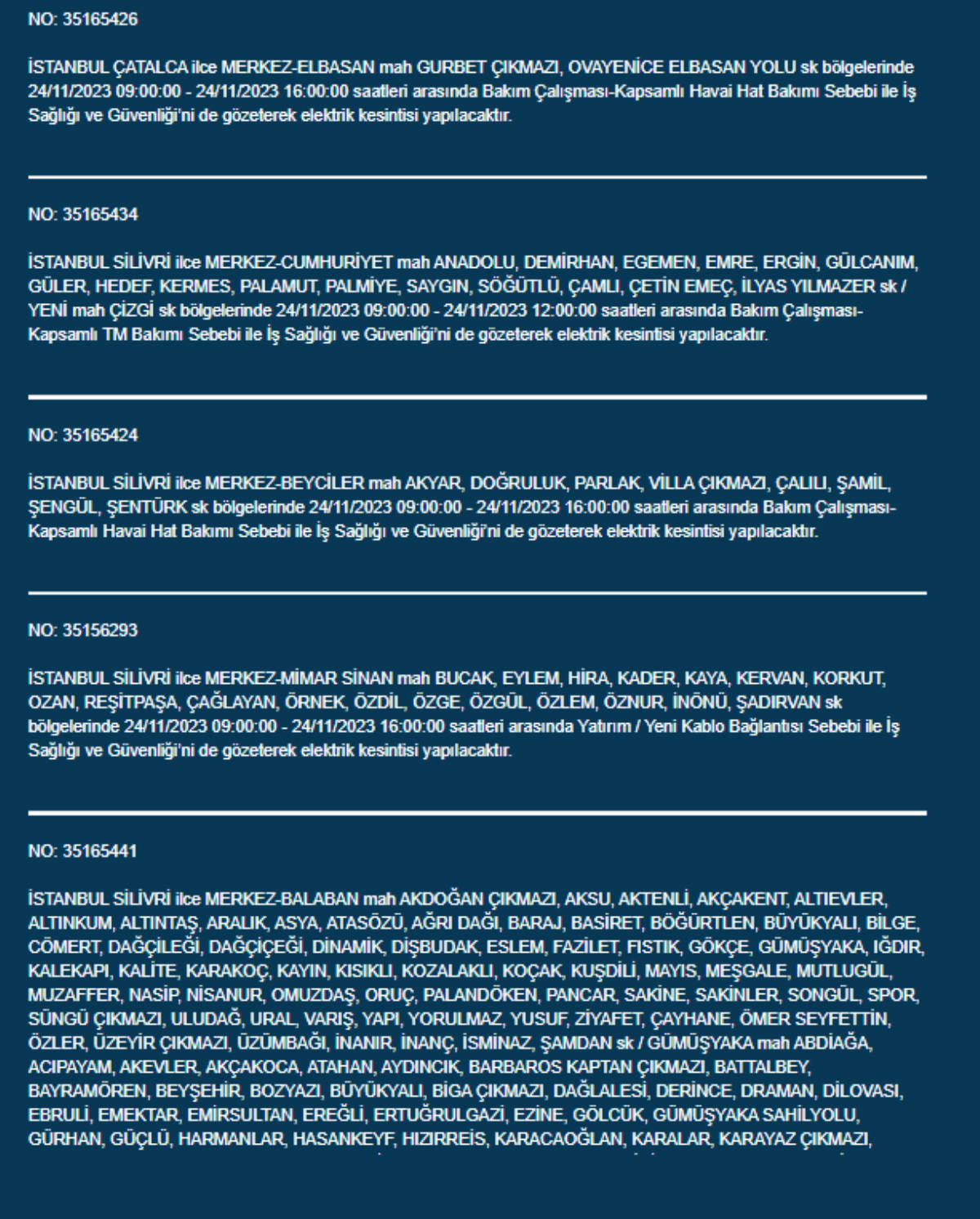 Boğaziçi Elektrik Dağıtım A.Ş, (BEDAŞ) İstanbul'da 24 Kasım Pazartesi günü elektrik kesintileri uygulanacak ilçe ve sokakları paylaştı. Yurttaşlar, nerede elektriklerin kesileceğini ve ne zaman geleceğini merak etti. Peki, 24 Kasım Pazartesi elektrik kesintilerinin yapılacağı ilçeler hangileri? İstanbul'da elektrikler ne zaman gelecek?