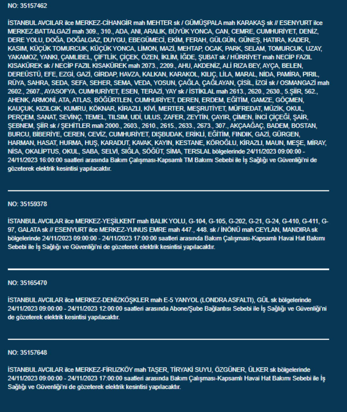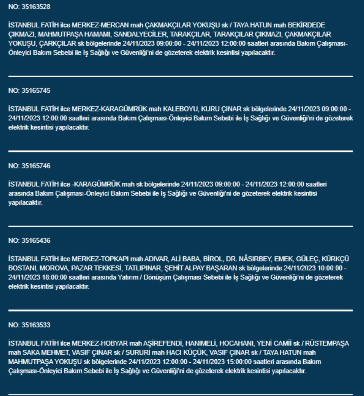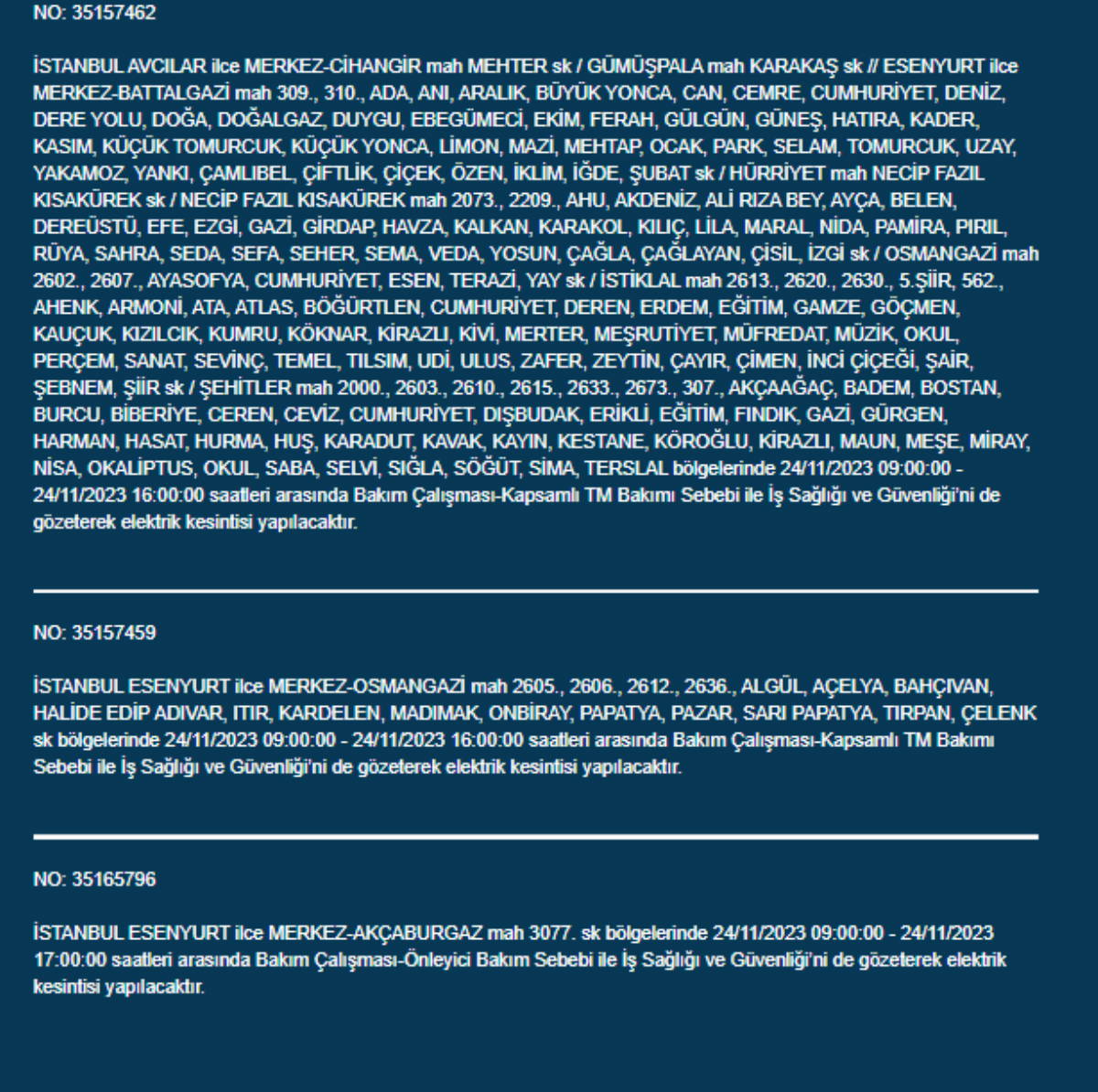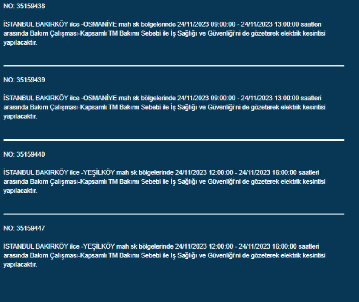 Boğaziçi Elektrik Dağıtım A.Ş, (BEDAŞ) İstanbul'da 24 Kasım Pazartesi günü elektrik kesintileri uygulanacak ilçe ve sokakları paylaştı. Yurttaşlar, nerede elektriklerin kesileceğini ve ne zaman geleceğini merak etti. Peki, 24 Kasım Pazartesi elektrik kesintilerinin yapılacağı ilçeler hangileri? İstanbul'da elektrikler ne zaman gelecek?