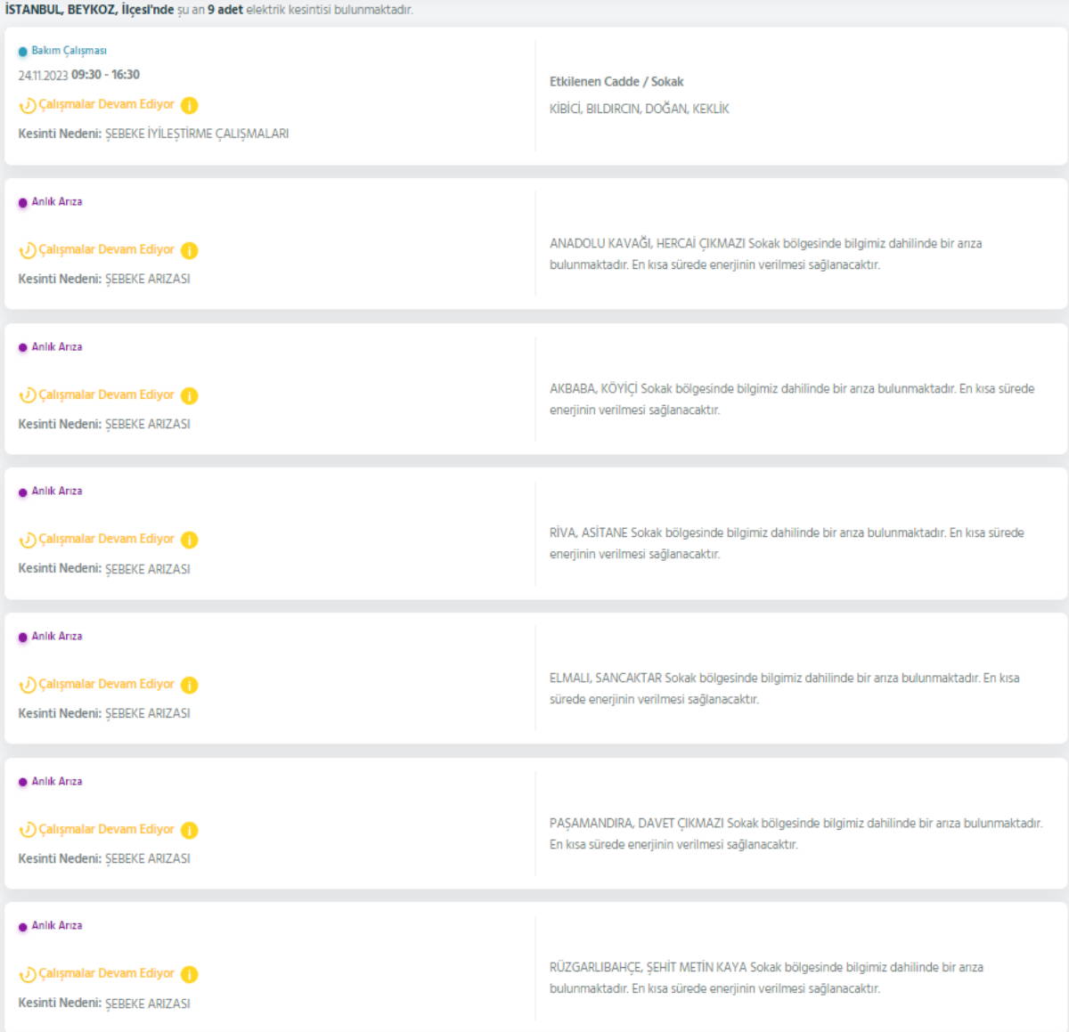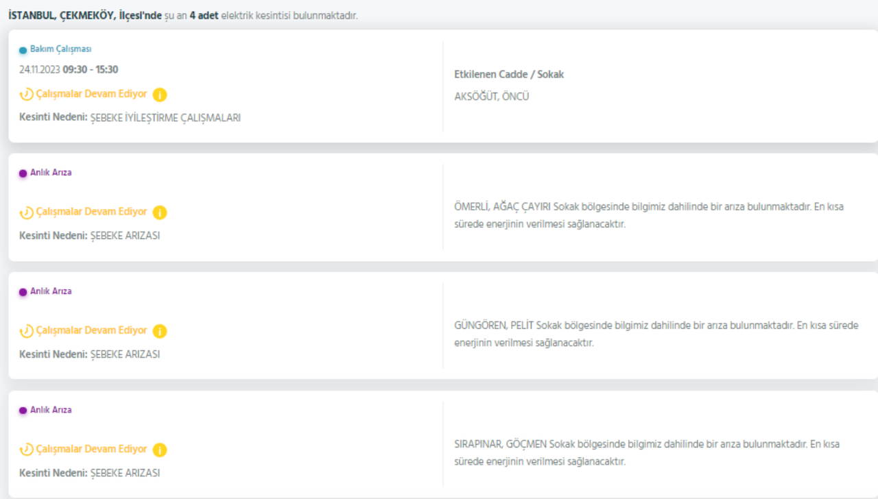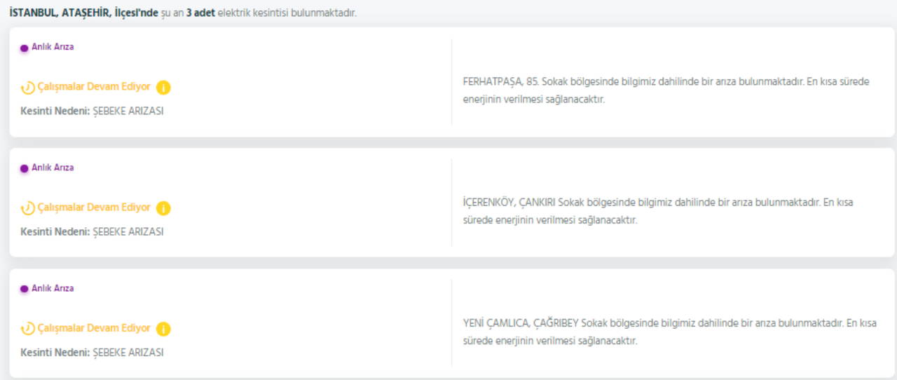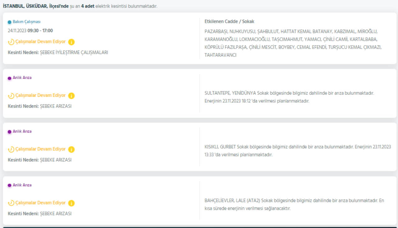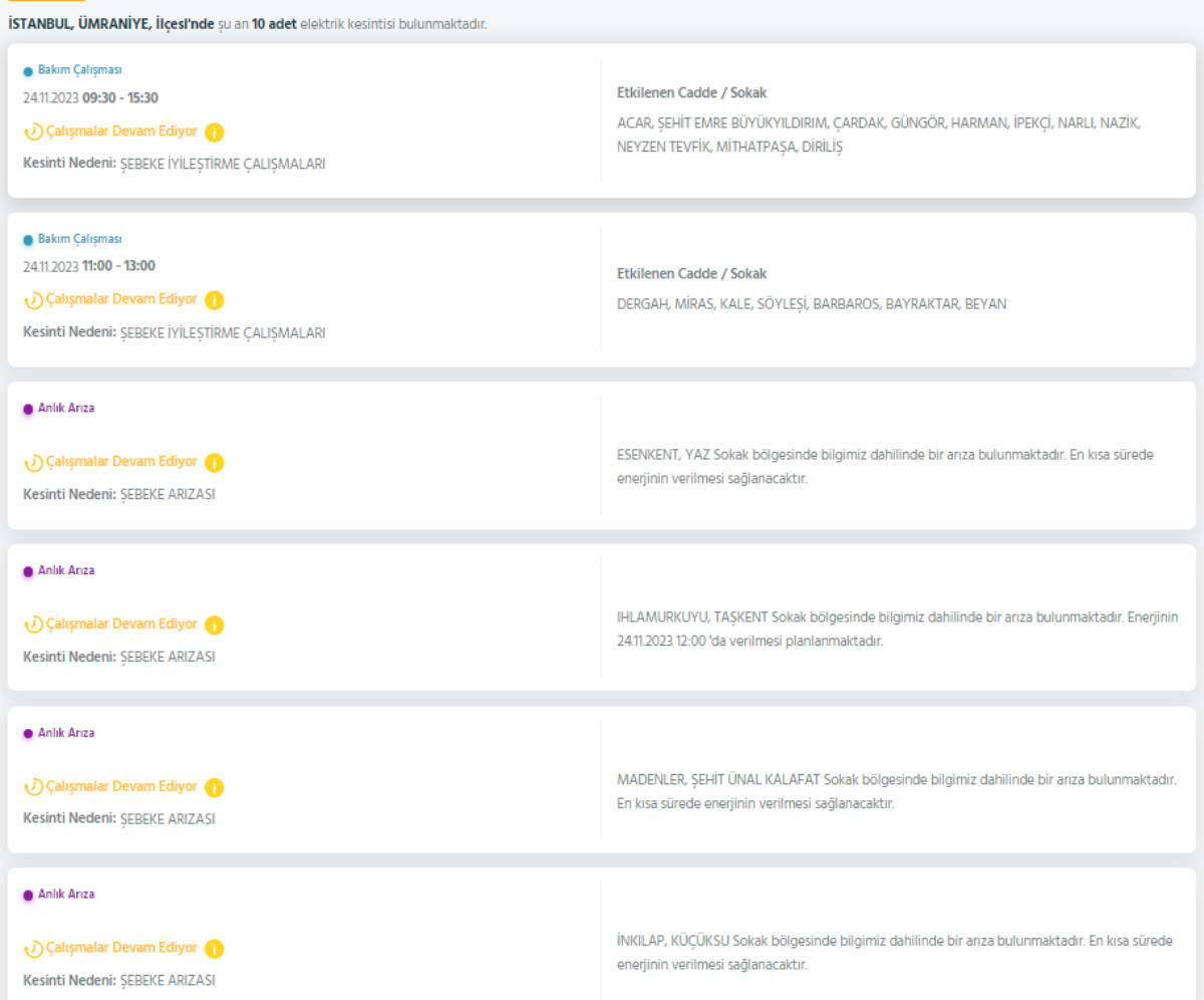 ANADOLU YAKASI ELEKTRİK KESİNTİSİ