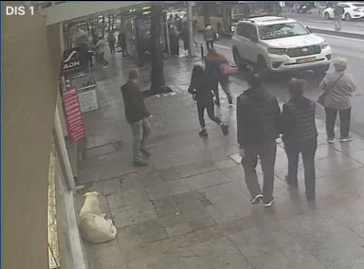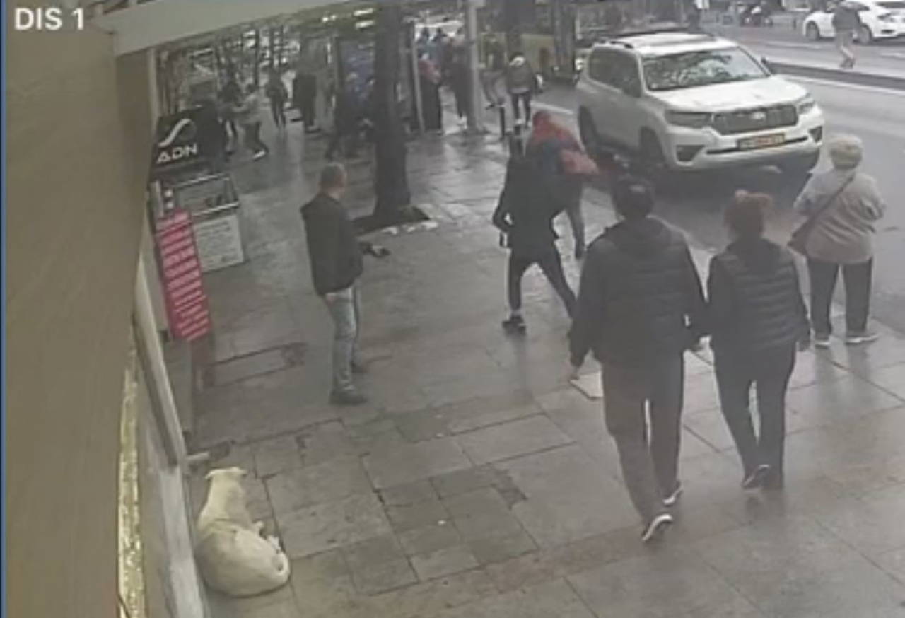 Yurttaşlar yaralının etrafında toplanırken, saldırgan da bıçakla koşarak kaçıyor.