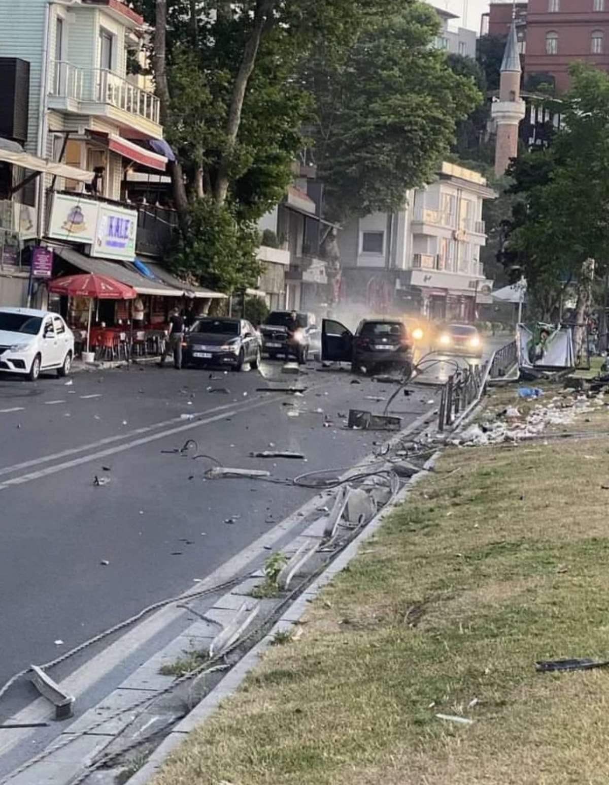 Görüntülerde, bariyerlere çarpan cip havalanarak taklalar atıyor. Cip ardından levhaya çarparak tekrar yola düşüyor. Ortalık savaş alanına dönüyor.