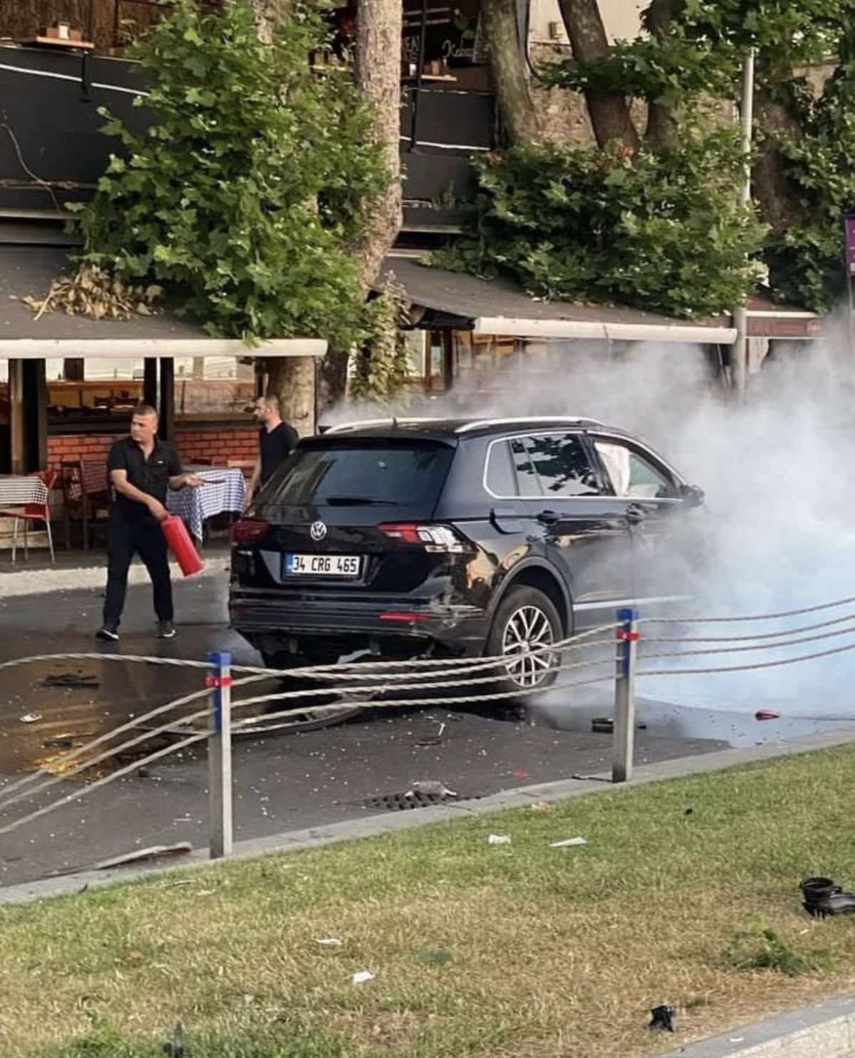 Yaklaşık 300 metre sürüklenerek tekrar yola düşen araçta ufak çaplı yangın çıktı.