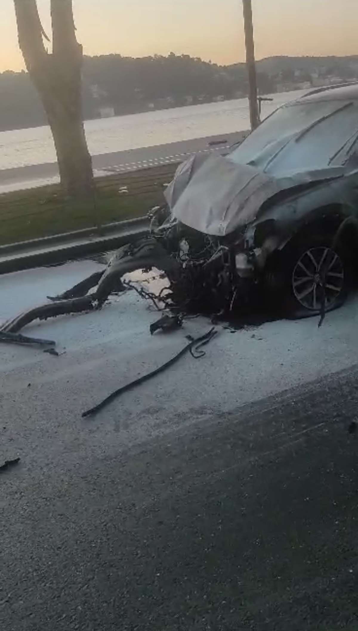 Kontrolden çıkan araç, yol kenarındaki çelik bariyerlere çarparak havalandı. Defalarca takla atan araç, yeşillik alandaki levhaya çarparak boğaza uçmaktan son anda kurtuldu.
