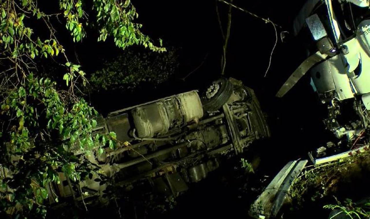 İstanbul'un Sarıyer ilçesine bağlı Çayırbaşı Mahallesi'nde bir TIR, kamyona çarptı.