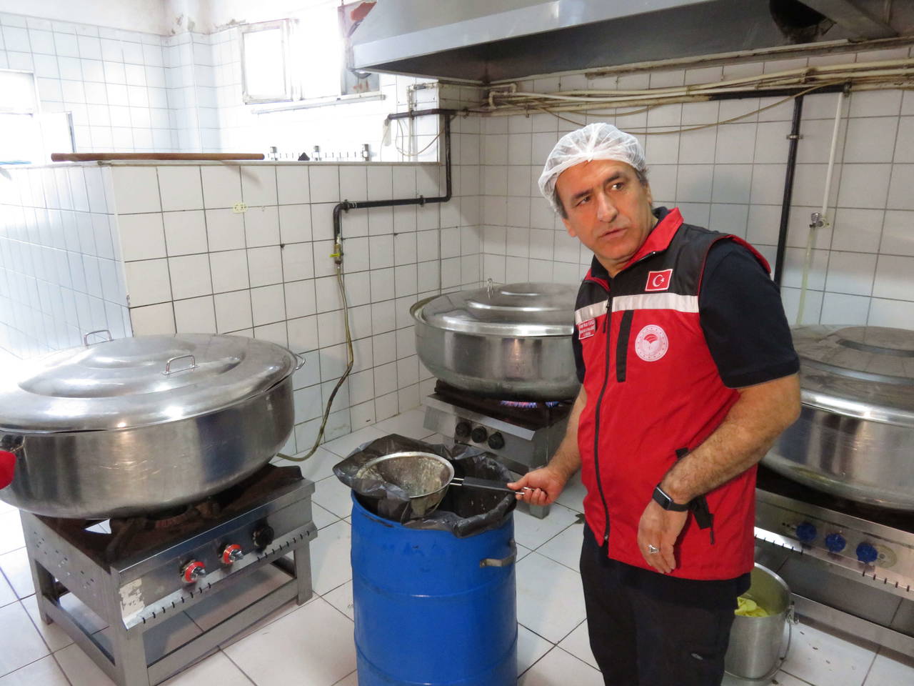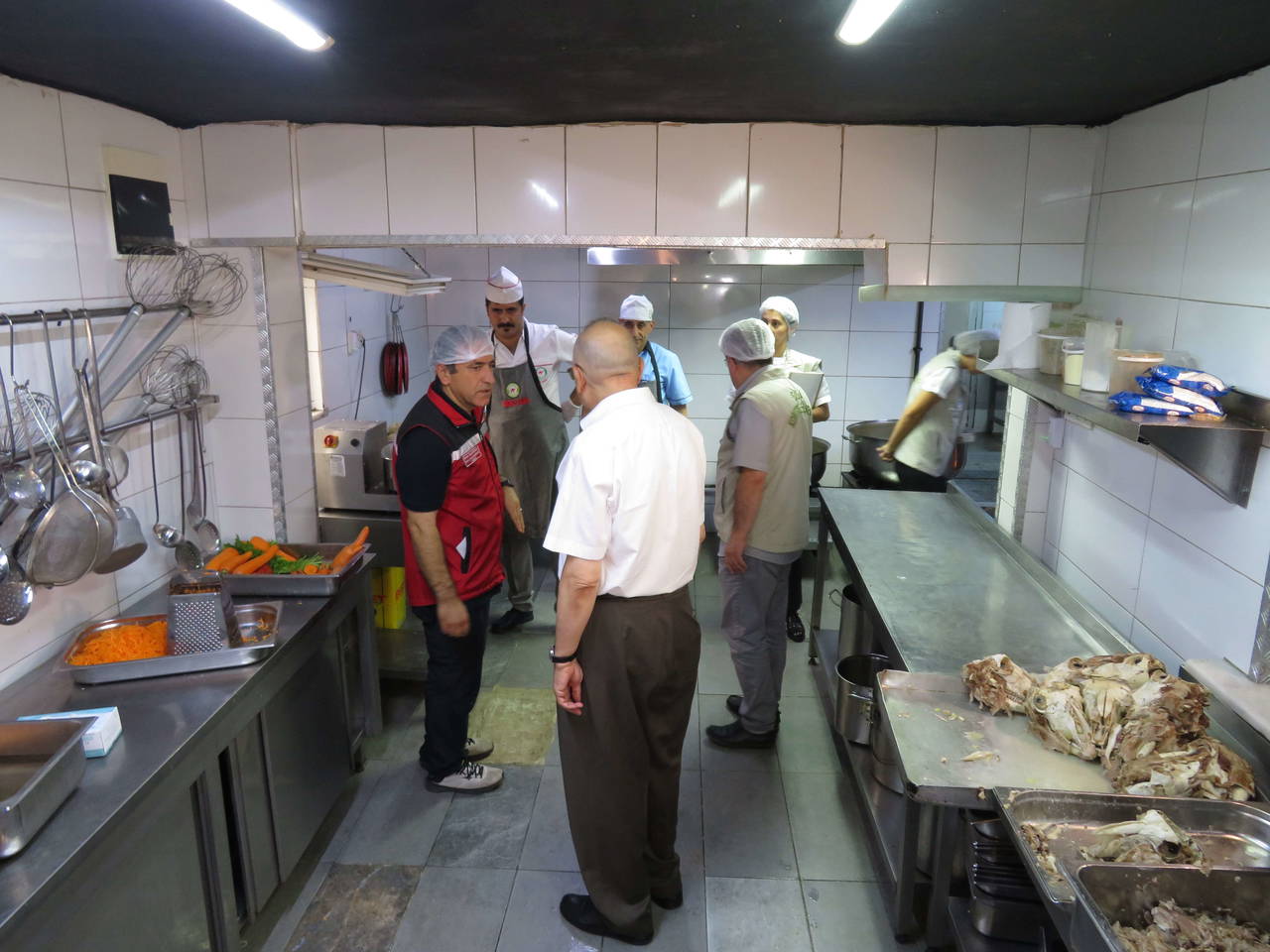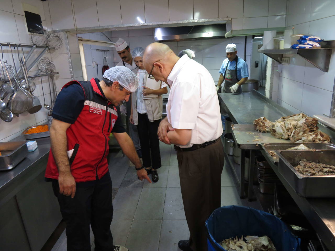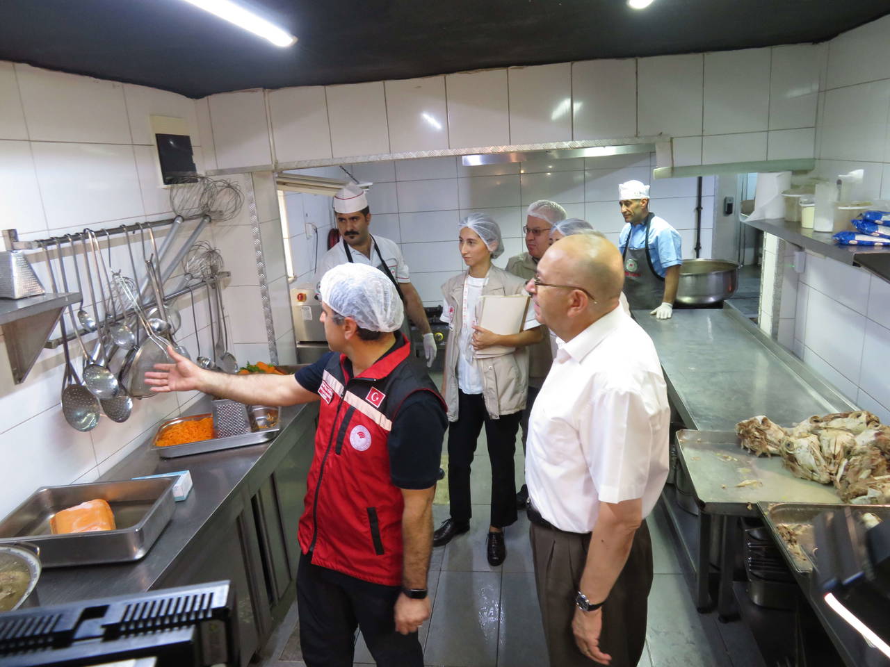 "Denetimlerimizi 7 gün 24 saat esasına göre, 765 gıda denetçimizle yapıyoruz. Denetimlerimizi bazı dönemlerde sıklaştırıyoruz, yine o denetimlerden bir tanesindeyiz. Bugün denetim yaptığımız bir önceki işletmede de burada da birtakım eksiklikler gördük. Bu eksiklikler neler ? Fayanslardaki ve sineklikle ilgili sıkıntılar, depo düzensizlikleri. Bir önceki işletmemizde soğuk hava deposunda, kırmızı etle beyaz eti, sakatatla beyaz eti yan yana gördük. Bunların çapraz bulaşmadan dolayı sıkıntı yaratacağı öngörülerek, bu konularda işletmeyi uyardık.İşletmelerimize öncelikle eğitim denetimi yapıyoruz.