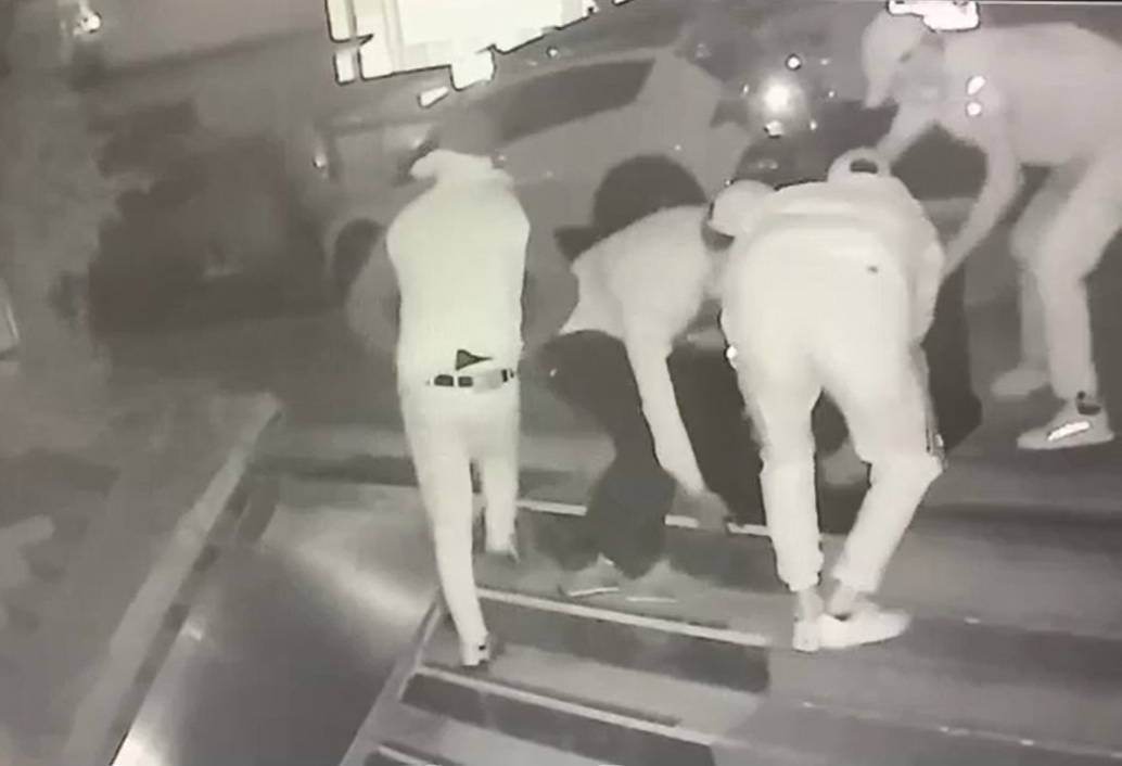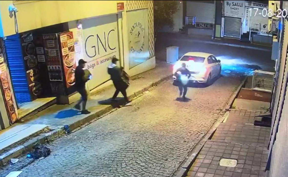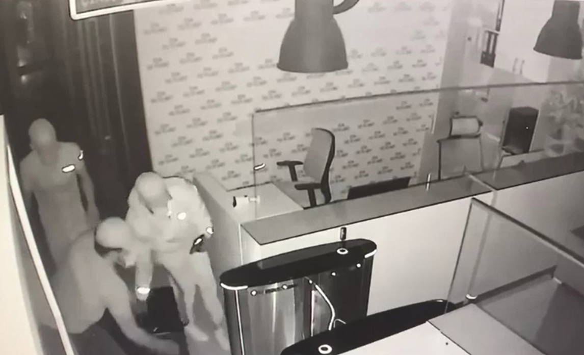 Güvenlik kamera görüntülerinde şüphelilerin açamadıkları para kasalarını taşıyarak dışarı çıkardıkları ve geldikleri otomobillere yükleyerek kaçtıkları tespit edildi.
