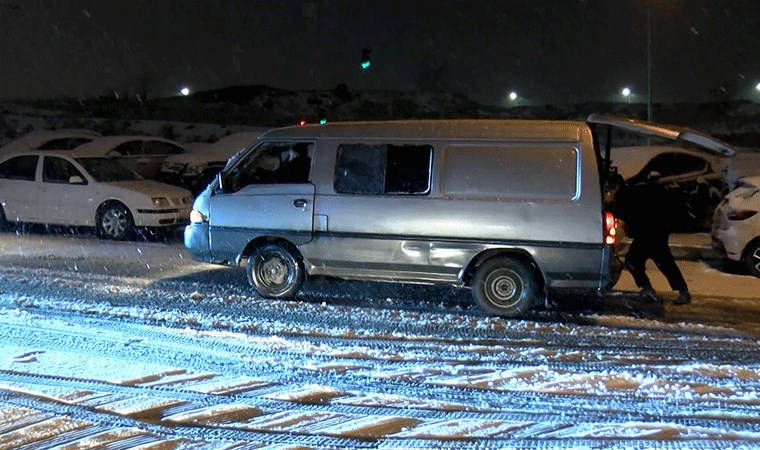 Başakşehir'de yağan kar nedeniyle yollar ve araçların üzerleri karla kaplandı. Başakşehir 4'üncü etapta sabah işine gitmek isteyen bir araç sürücüsü karla kaplanan yolda ilerleyemedi. Bir kişi aracın arka kısmına oturarak aracı hareket ettirmeye çalışsa da sürücü başarılı olamadı.