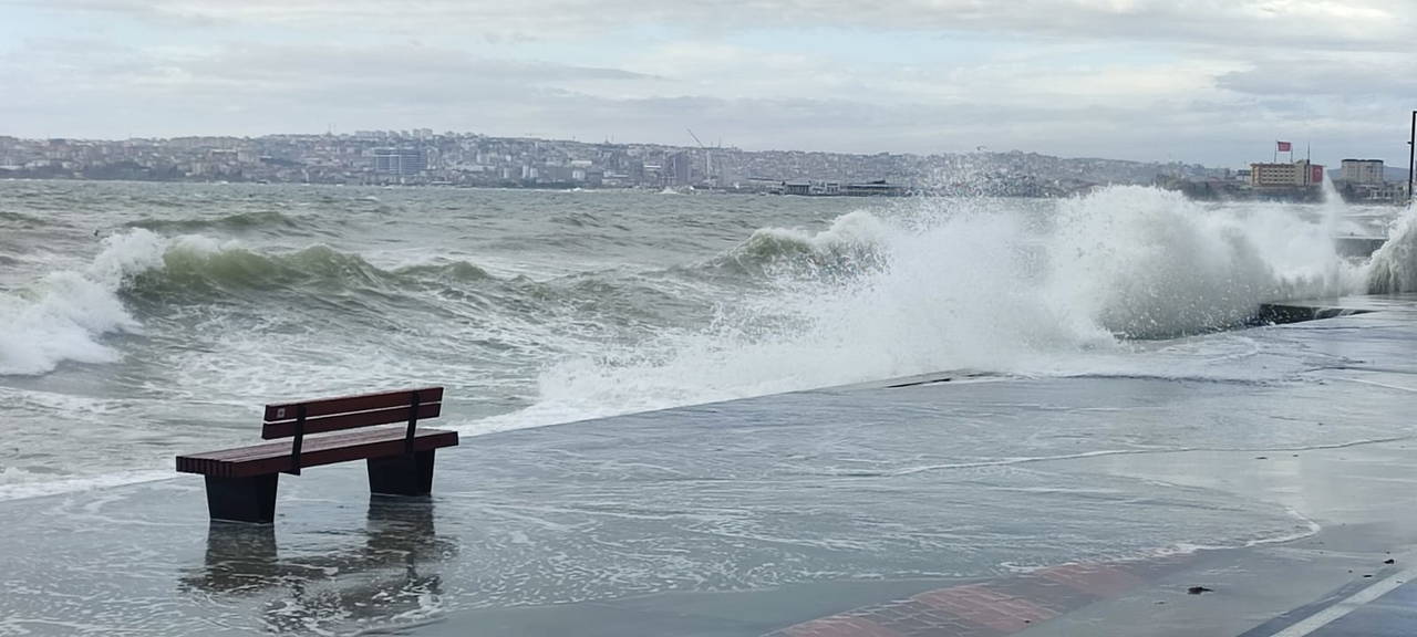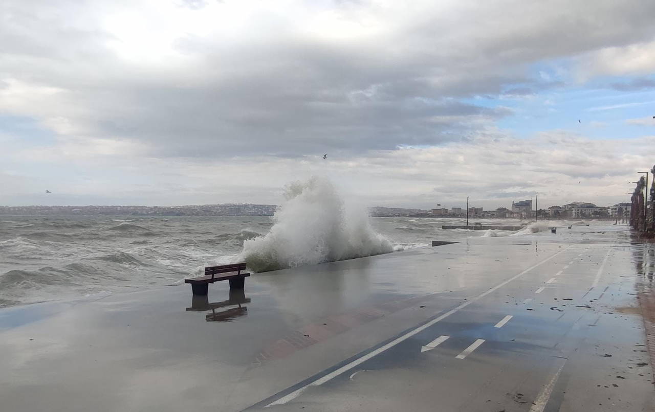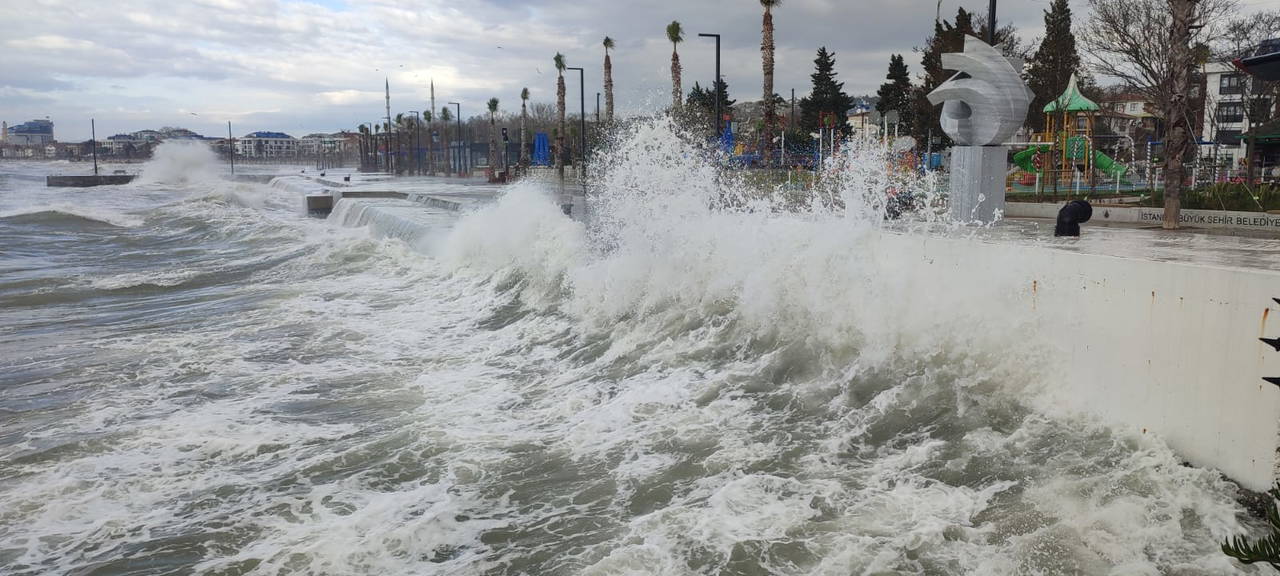Meteoroloji Genel Müdürlüğü'nden yapılan uyarıların ardından bugün lodos etkisini gösterirken Büyükçekmece'de dev dalgalar kıyıya vurdu.
