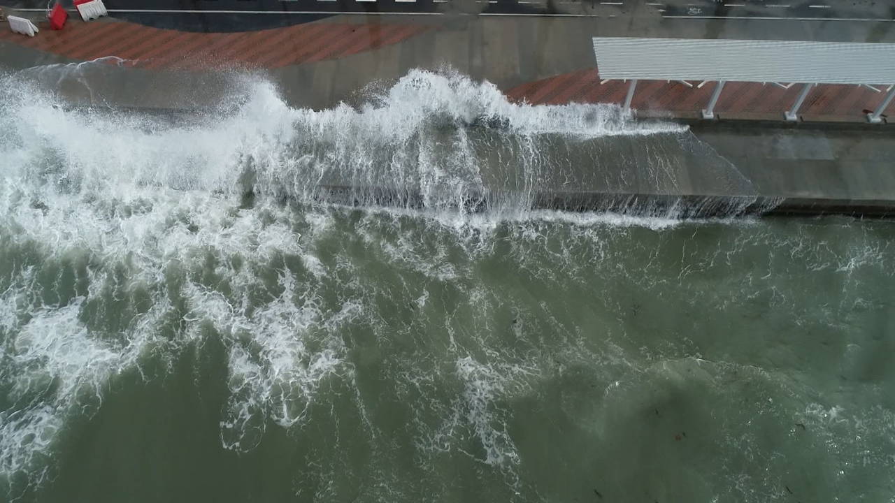 Albatros Sahili'nde dalgaların boyunun zaman zaman metrelerce yukarı çıktığı görüldü.