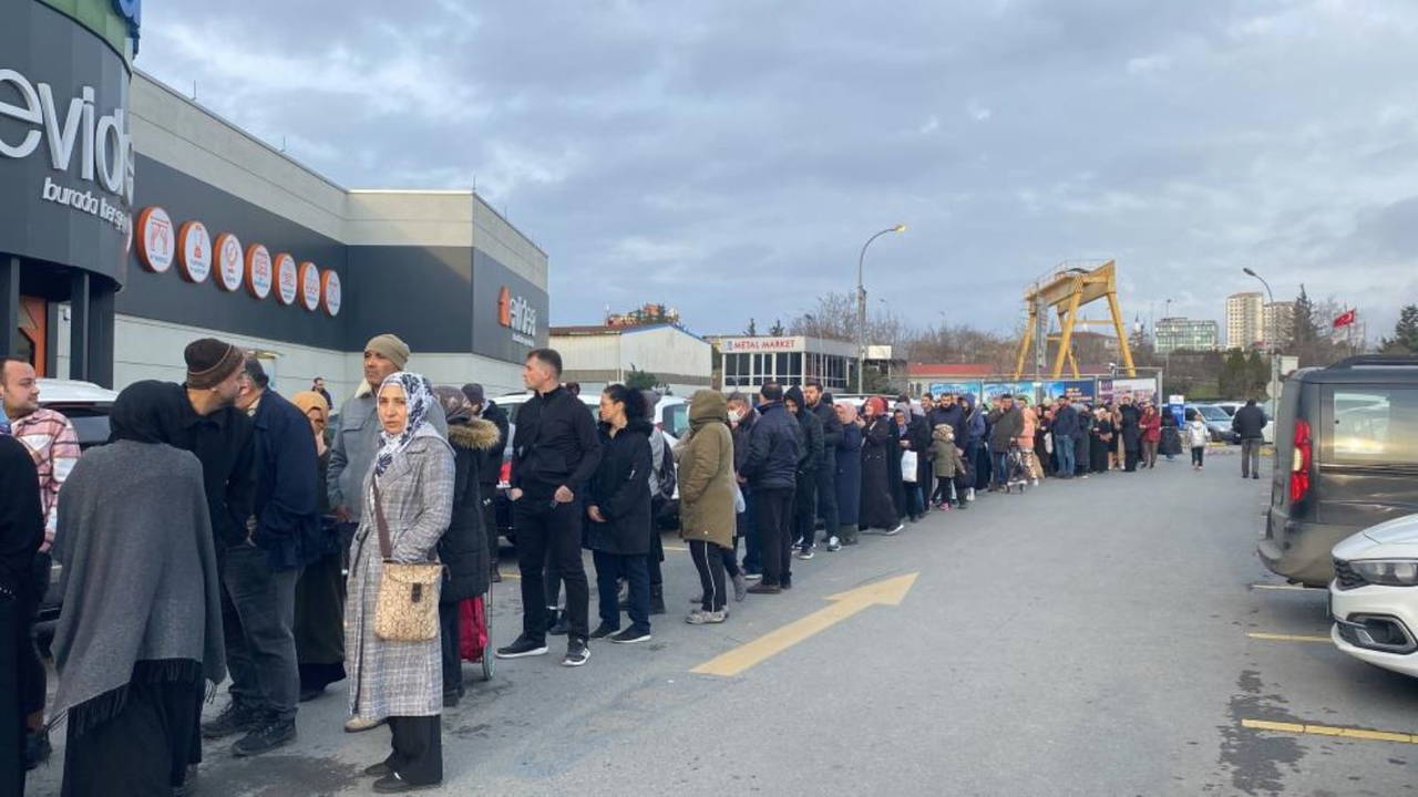 İstanbul Pendik'te bir AVM içerisinde bulunan zincir market, açılışa özel indirim yapacağını duyurdu. Haberi alan yurttaşlar, açılıştan saatler önce AVM önünde sıraya girdi.