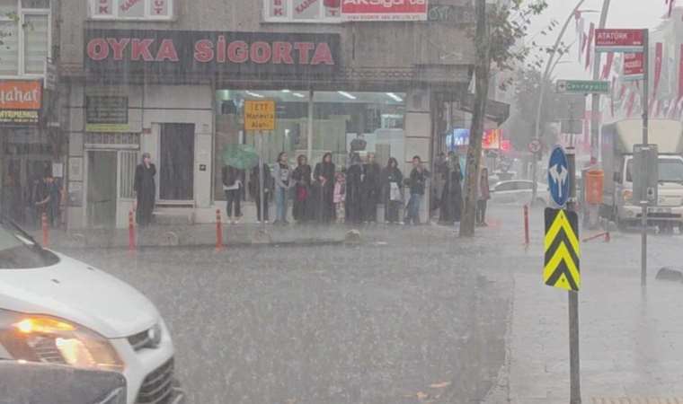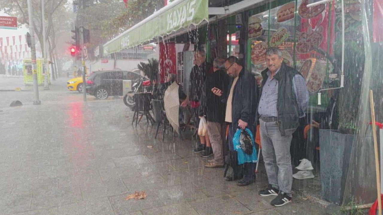 Araçlar trafikte ilerlemekte güçlük çekerken yurttaşlar ise yağmurdan saçakların altlarına sığınarak korunmaya çalıştı.