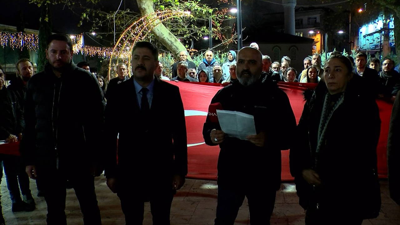 'Şehitler ölmez vatan bölünmez' şeklinde slogan atarak tekbir getiren grup, daha sonra açıklama yaptı.