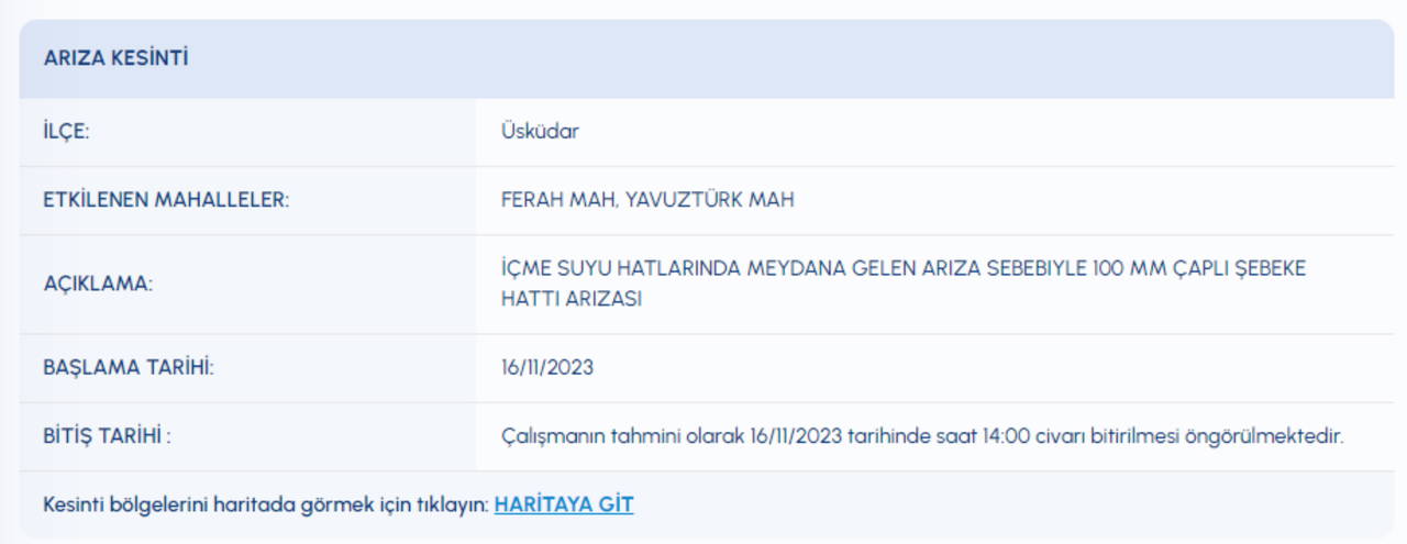 İstanbul’da su kesintisi yapılacak ilçe ve mahalleler İSKİ tarafından açıklandı. Yurttaşlar, su kesintisin ne zaman son bulacağını araştırmaya başladı. Peki, 16 Kasım İstanbul'da sular ne zaman gelecek? Hangi ilçelerde su kesilecek?
