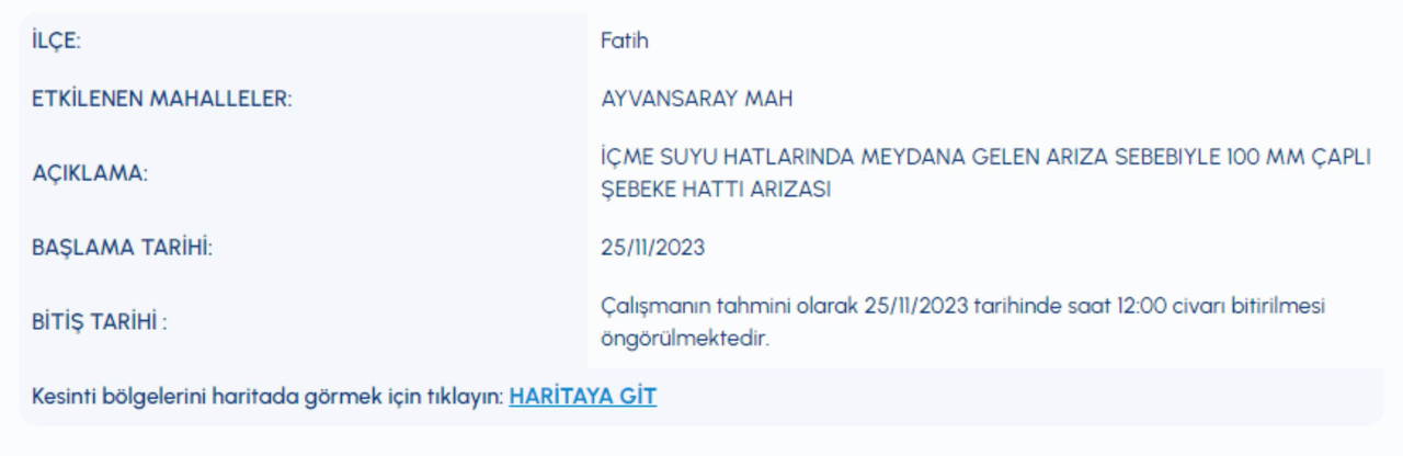 İstanbul’da su kesintisiyapılacak ilçe ve mahalleler İSKİ tarafından açıklandı. Yurttaşlar, su kesintisin ne zaman son bulacağını araştırmaya başladı. Peki, 25 Kasım İstanbul'da sular ne zaman gelecek? Hangi ilçelerde su kesilecek?