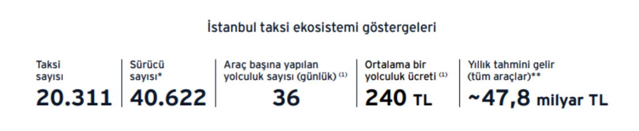 Kamuoyu araştırmalarıyla bilinen EY Türkiye, işte bu soruların yanıtlarının yer aldığı bir rapor yayımladı. Cumhuriyet söz konusu raporun yayımlandığı toplantıyı izledi. Araştırmaya göre İstanbul’da 20.311 taksi ve 40.622 taksi sürücüsü bulunuyor. Günde ortalama 36 yolculuk yapan taksiler, yıllık 47,8 milyar TL gelir üretiyor. Ancak mevcut sistemde en dikkat çeken sorunlardan biri taksi plakalarının bir yatırım aracı haline gelmesi. Plaka sahipleri ve kiracılar yüksek gelir elde ederken, taksi sürücülerinin kazancı düşük seviyede kalıyor.