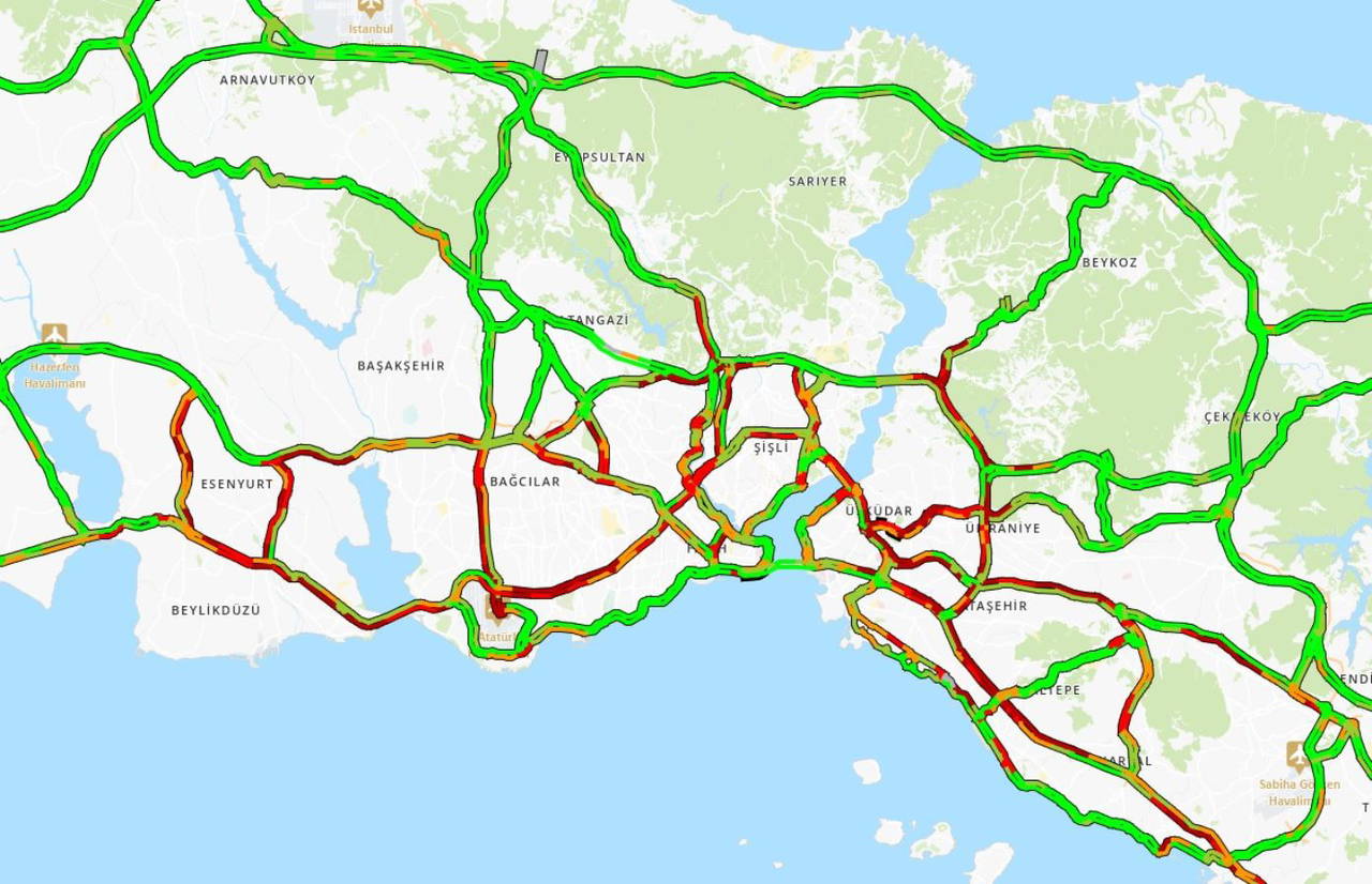 İstanbul Büyükşehir Belediyesi (İBB) Trafik Yoğunluk Haritası verilerine göre, kent genelinde trafik yoğunluğu saat 08.30 itibarıyla yüzde 75 olarak ölçüldü.