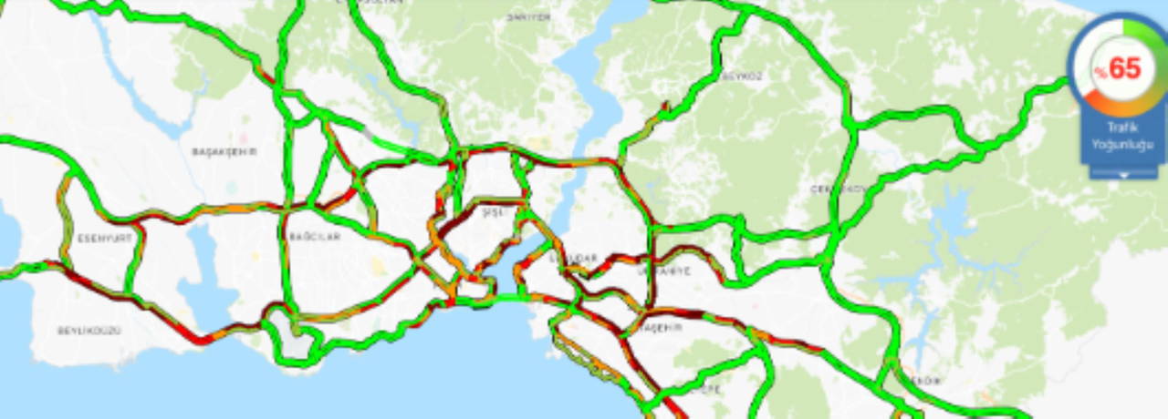 İBB verilerine göre yoğunluk saat 15.18 itibarıyla yüzde 65'i gösterdi.Özellikle birinci ve ikinci çevreyolları, bağlantı yolları ve sahillerde araç yoğunluğu var.
