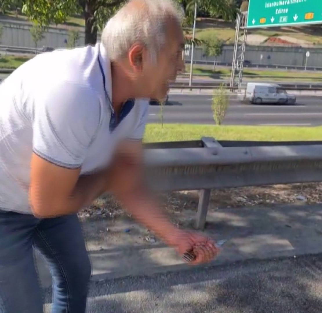 Bir süre sonra taraflardan biri elinde bıçakla kolu yaralı yardım istiyor. Yaralı sürücünün o anları cep telefonu kamerasıyla görüntüleyen başka bir sürücüye 'Plakasını alır mısınız, beni cama sıkıştırdı, bıçağı zor aldım elinden' dediği görülüyor.