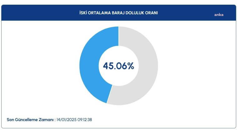 Bir süredir İstanbul'u etkisi altına alan yağışlı havanın etkisiyle barajların doluluk oranı artış gösterdi. İSKİ'nin paylaştığı verilere göre, İstanbul'a su sağlayan barajların ortalama doluluk oranı 14 Ocak 2025 itibarıyla yüzde 45.06'ya ulaştı. 2024'ün Kasım ayında bu oran 28,24'lere kadar düşmüştü.
