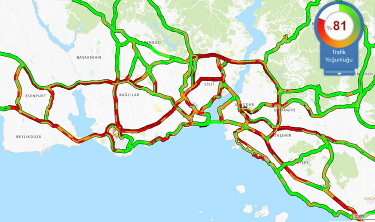 İş ve okulundan çıkan vatandaşlar evlerine giderken trafiğe takıldı. D-100 Karayolu Cevizlibağ mevkii’nde çift yönlü trafik yoğunluğu oluştu. İstanbul Büyükşehir Belediyesi (İBB) verilerine göre saat 19.00 itibariyle trafik yoğunluğu İstanbul genelinde yüzde 81 seviyelerine ulaştı.