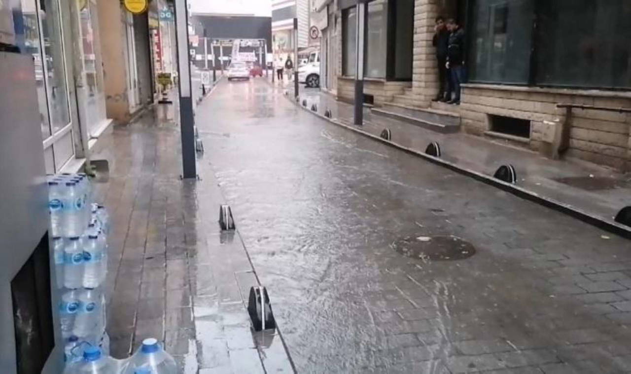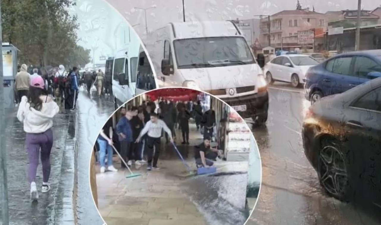 Vatandaşlar yağmurun dinmesini durak ve bina girişlerine sığınarak bekledi. Etkili yağış nedeniyle bazı sokaklar göle döndü.