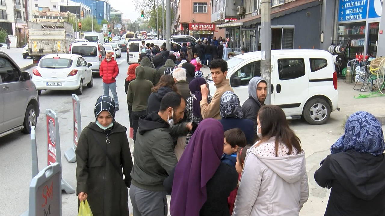 Ücretsiz ayakkabı dağıtılacağını duyan çok sayıda kişi, depo önünde toplanarak metrelerce kuyruk oluşturdu.