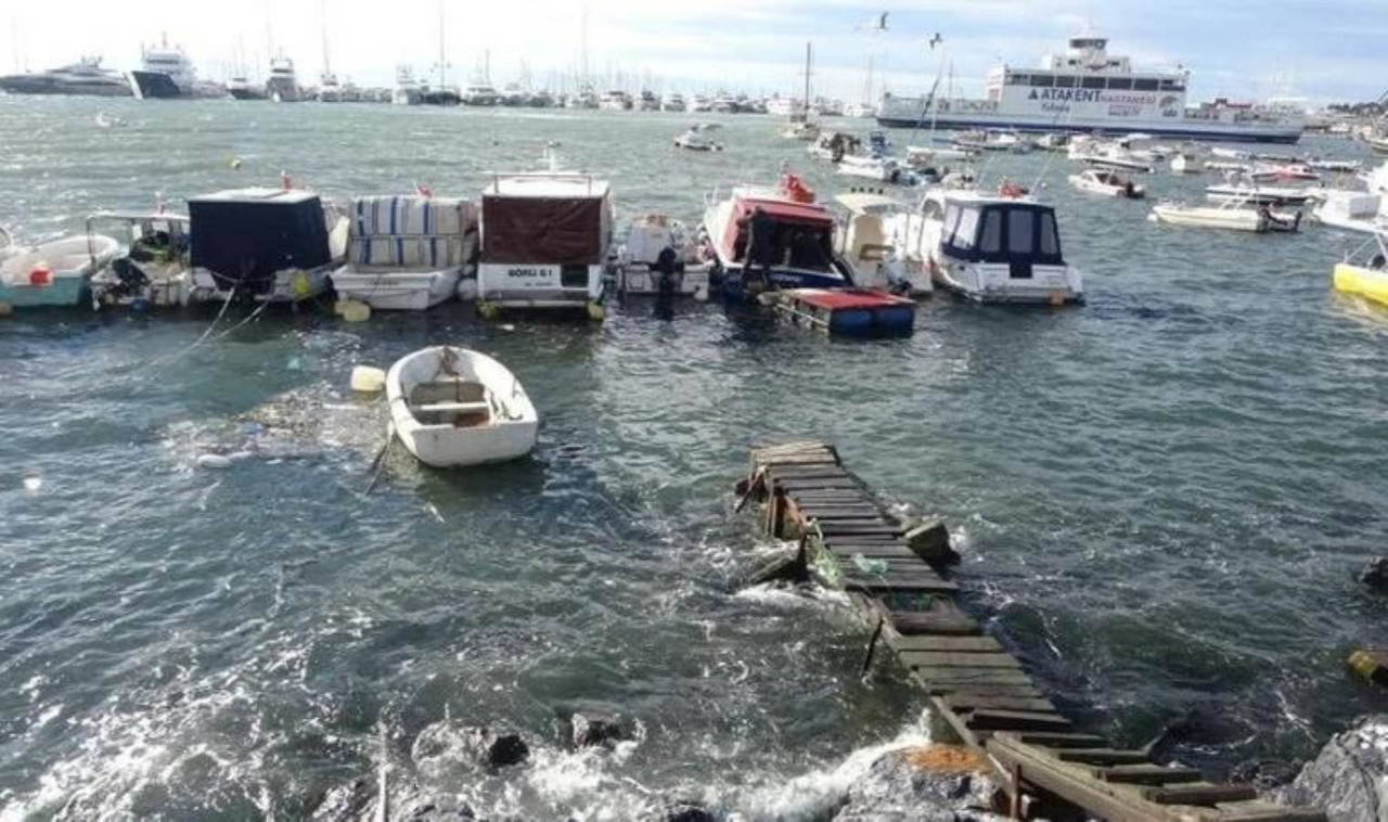 Pendik'te şiddetli lodosun etkisiyle sahilde bulunan balıkçı teknelerinden dördü fırtınaya dayanamayarak battı. Bir balıkçı teknesi ise ipinden kurtularak kayalıklara vurdu. Kayalıklara vuran teknenin parçalandığı gözlendi.