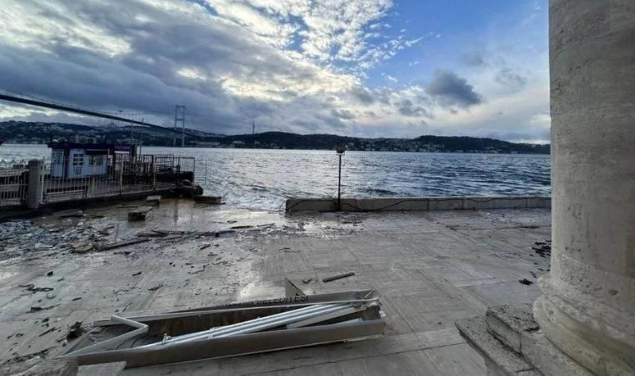 İstanbul’da etkili olan lodos nedeniyle Büyük Mecidiye Camisi’nin avlusunda hasar meydana geldi. Ortaköy’deki Büyük Mecidiye Camisi'nin deniz kısmında bulunan beton bloklar yerinden söküldü.