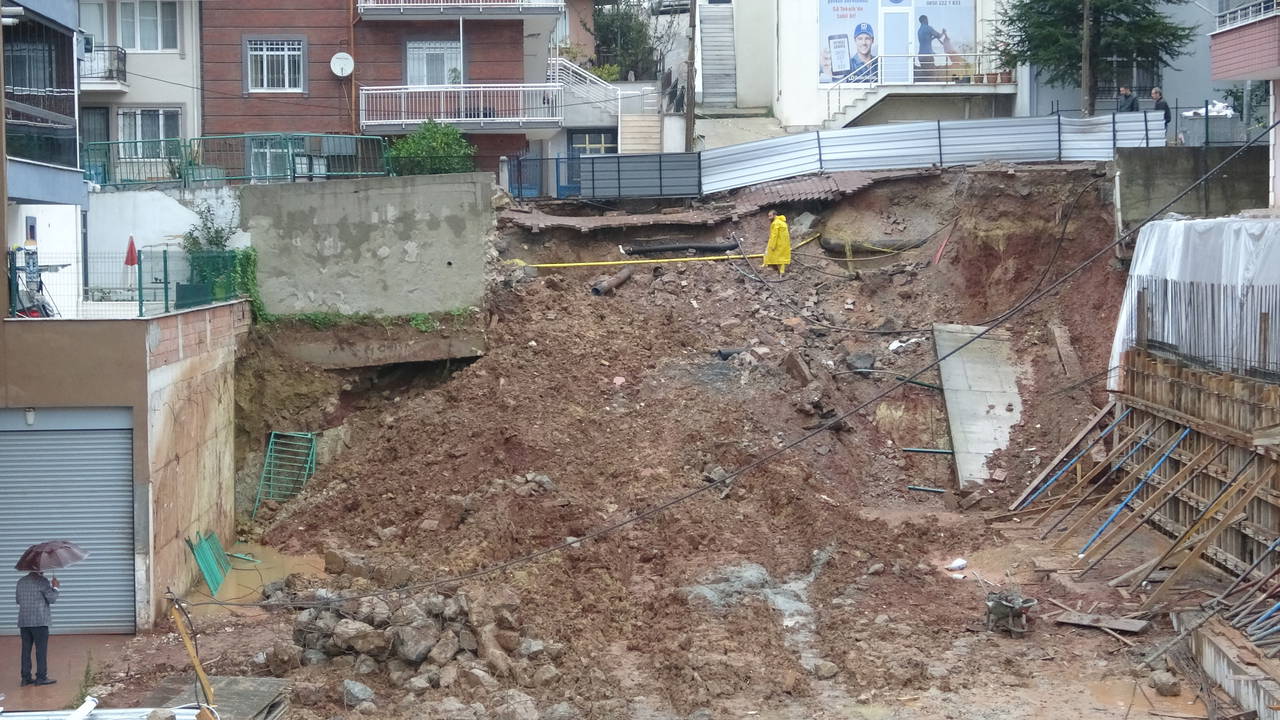 İzmit ilçesi Serdar Mahallesi Buğday Sokak’ta, 11 Kasım'da 23.00 sıralarında 6 katlı binanın bitişiğinde bulunan inşaat çalışmasında, temel kazısı ve sonrasında sağanak yağış sebebiyle istinat duvarı çöktü.