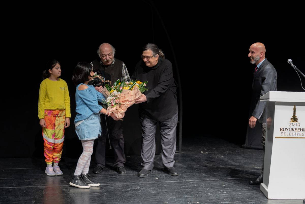 İzBBŞT İsmet İnönü Sahnesi’ndeki tiyatro gösterimine İzmir Büyükşehir Belediyesi bürokratları, şehit ve gazi derneklerinin üyeleri katıldı. Oyundan önce dernekler adına İzBBŞT Kurucu Genel Sanat Yönetmeni Yücel Erten ile oyunun Müzik Direktörü Cem İdiz’e çiçek takdim edildi.