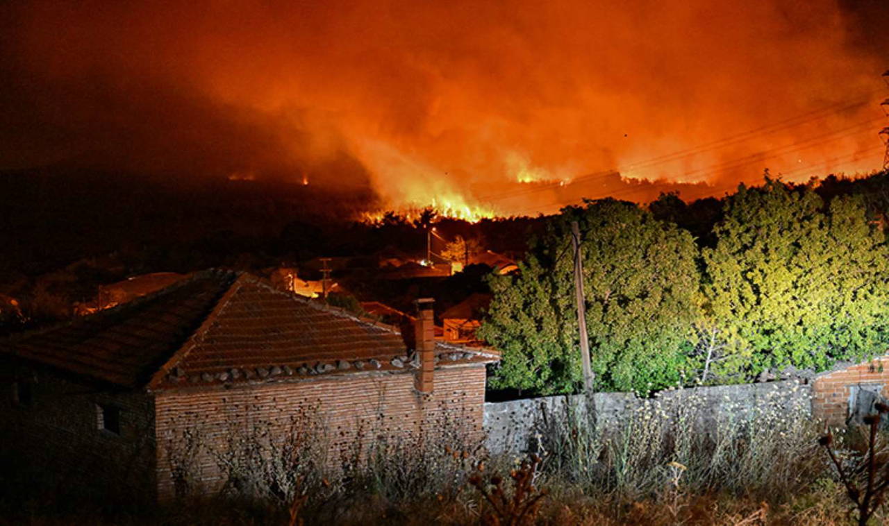 15 helikopter, 7 uçak, 50 arazöz, 20 su ikmal aracı ve 7 dozerle müdahale edilen yangının yayılımının durdurulmasına çalışılıyor.