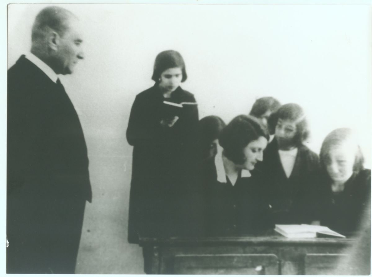 Cumhurbaşkanı Mustafa Kemal, okul önünde ‘İzmir Kız Lisesi’ Müdürü Haydar Bey ve öğretmenlerce karşılamıştır. Öğrenciler derste olduğu için, müdür odasında bir süre dinlenen Cumhurbaşkanı, okul hakkında bilgi almıştır. Bundan sonra Fransızca dersi olan beşinci sınıfa giren Cumhurbaşkanı, öğrencilerin çalışmasını izledikten sonra onlarla Fransızca konuşmuştur. İki öğrenciye metin okuttuktan sonra altıncı sınıfın Edebiyat dersine girmiş, öğrenci Naime’den ‘Saz Şairleri’ konusunu dinlemiştir. Cumhurbaşkanı, öğrencilere sorular sorduktan sonra, aldığı cevaplardan memnun olarak sınıftan ayrılmıştır.